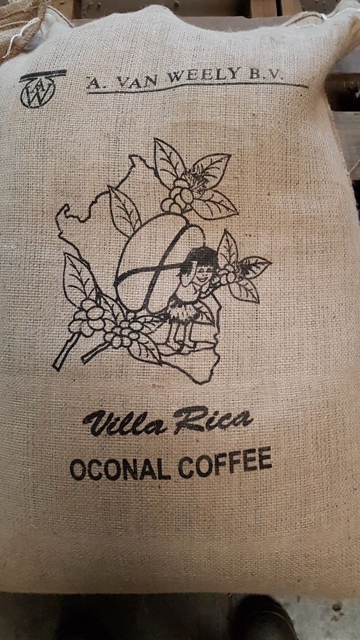 Nog veel leuker is dat ik nog een lading mooie info op het spoor kwam, toen Noé himself aanstipte dat het microlot gemerkt is als 'Oconal' koffie (want de zakken worden samen met twee andere, grotere partijen verscheept; wel zo handig om ze er in Antwerpen uit te kunnen vissen). Even googlen leverde al dit prachtigs op: