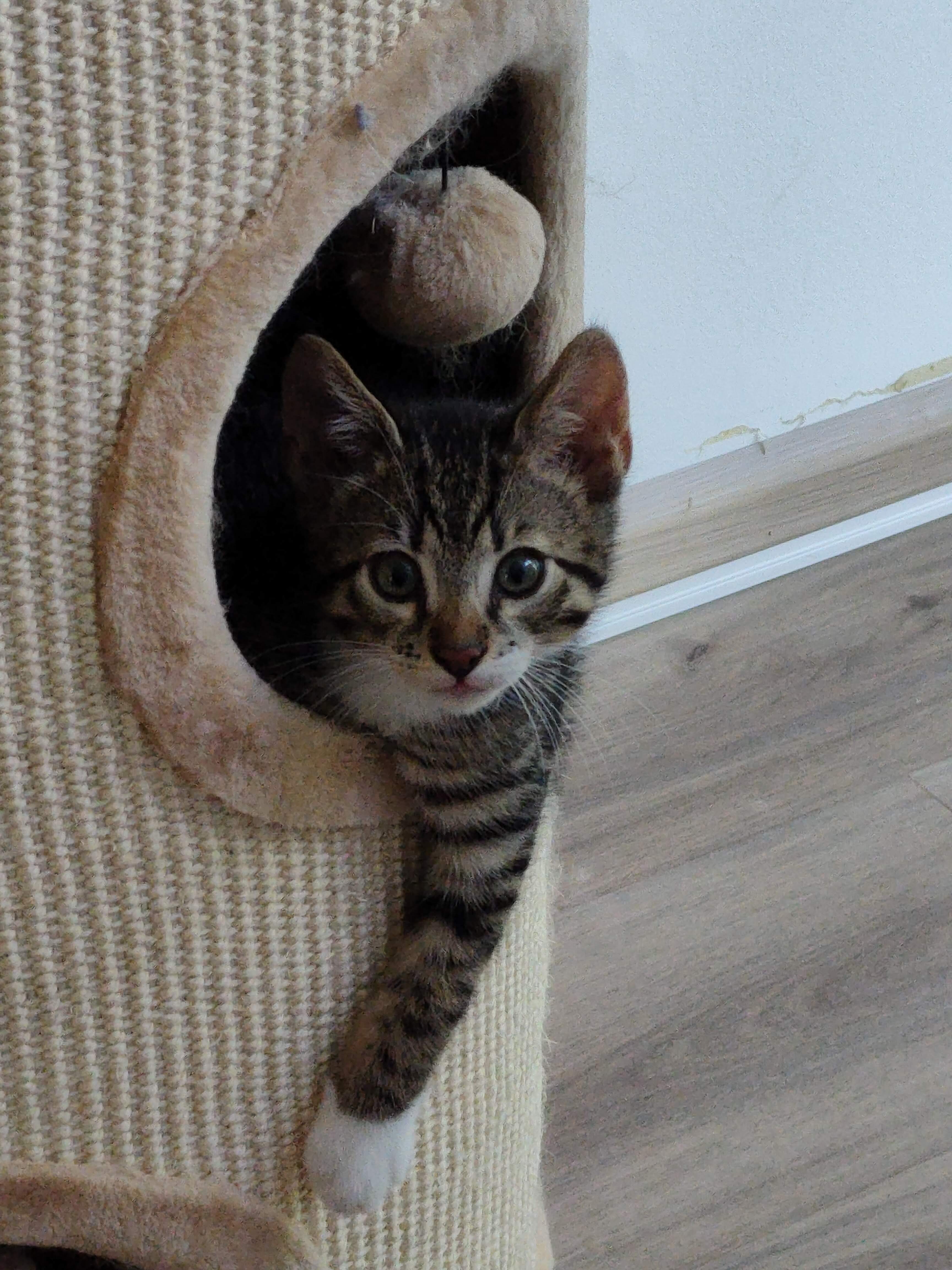 RoosW schreef:Na het plotsklaps overlijden van onze Napoleon (Ocicat, slechts 4,5 jaar oud geworden, natte FIP vermoedelijk) een impulsieve ingeving gevolgd en een nieuw kitten in de groep gebracht, voor het eerst (voor ons samen) een niet ras-kat, of althans, bijna, een slip-nestje, mamma Bengaal was hem gepeerd voor een hitsige nacht met een buur kater.