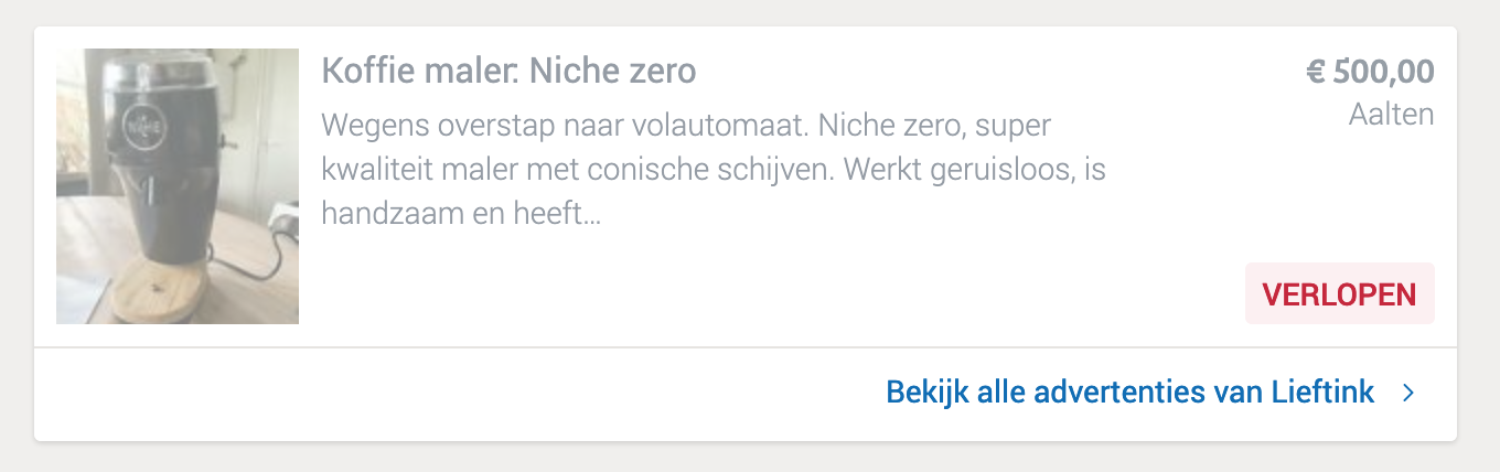 Wel navragen of het ronde houten schijfje (grindcup tray) en de grindcup erbij zitten. Beetje gek dat hij de molen zonder deze onderdelen op marktplaats zet.