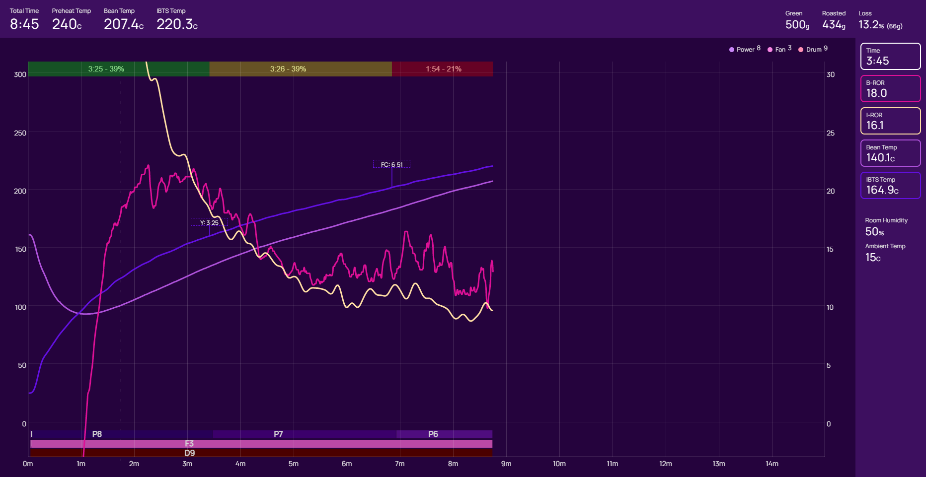 1. Zodra ik op 220 graden zit en de bonen los is de 1st crack voor sommige nog bezig. Het valt mij op dat sommige nog niet 'gepoft' zijn als het ware.