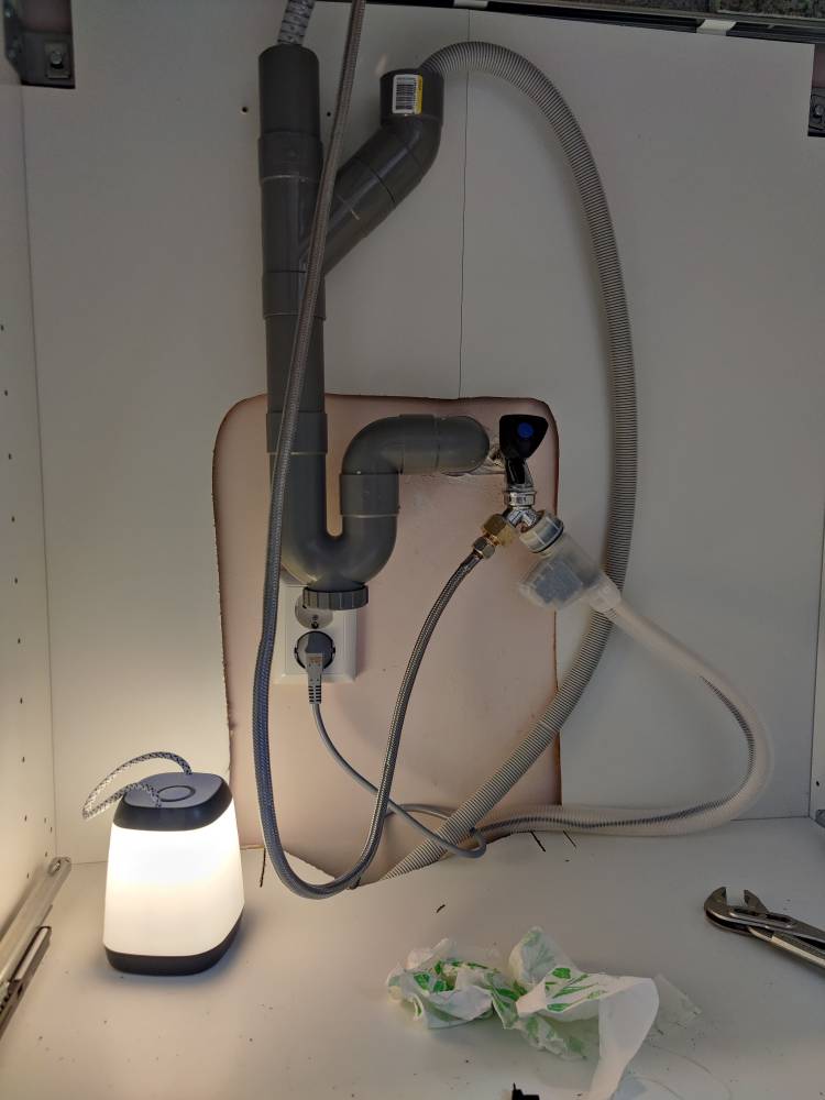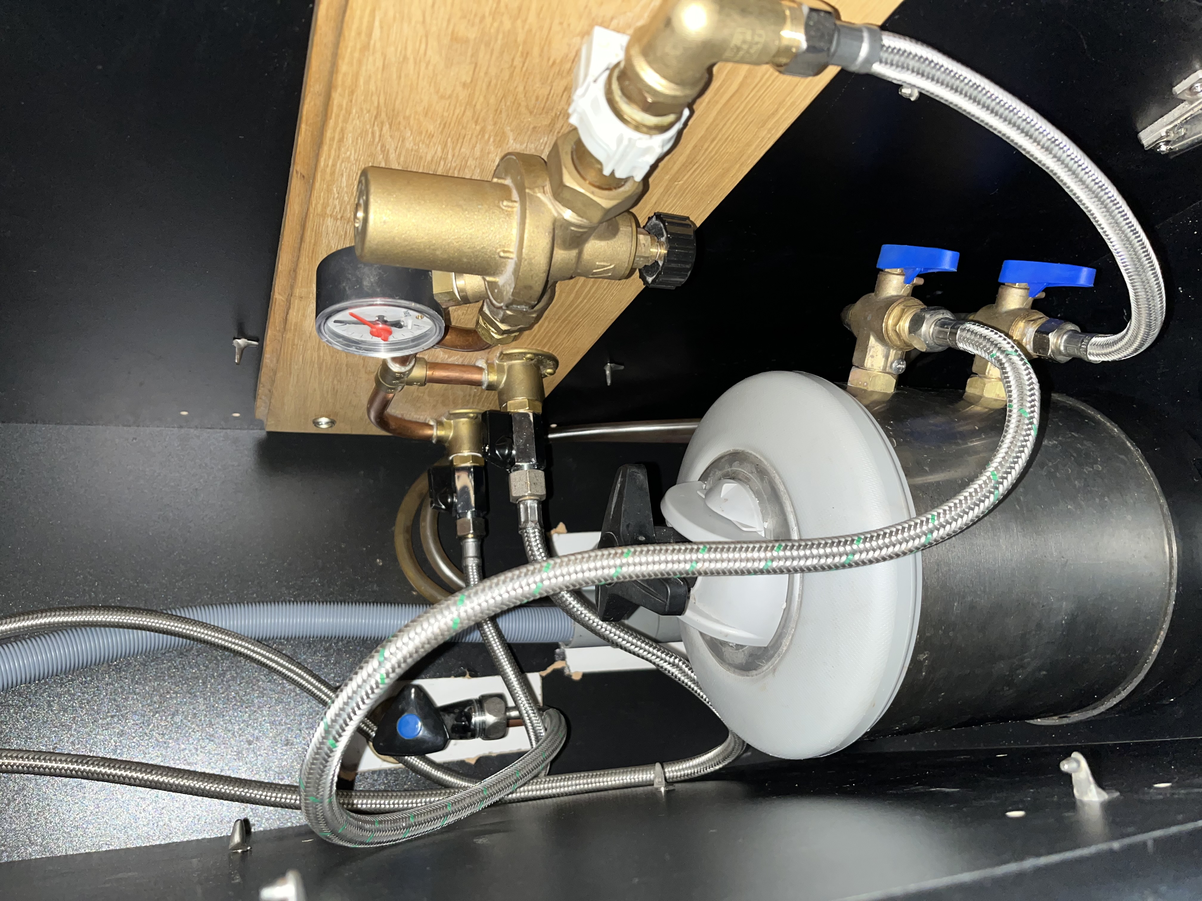 Net de vaatwasser voor de eerste keer aangedaan, verliep prima. De Profitec is inmiddels ook aangesloten, op het metertje net boven de 1 bar. Dus wat mij betreft prima, hopen dat het zo blijft!