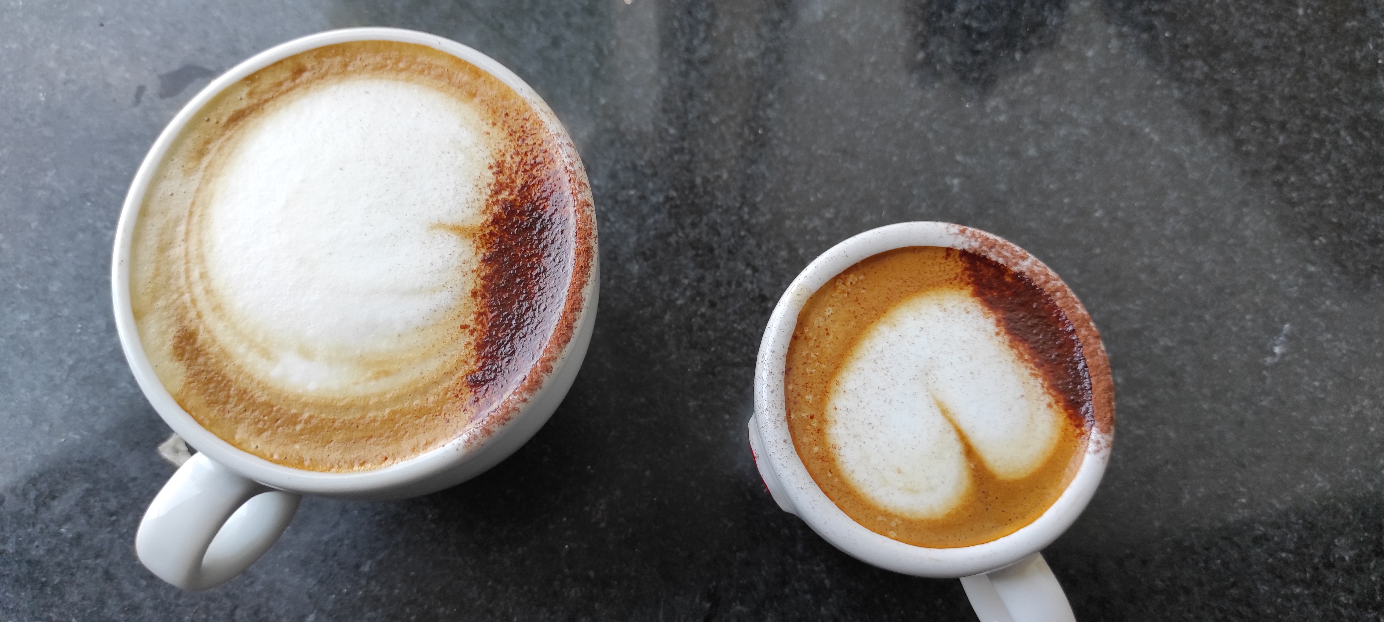 Zojuist deze twee gemaakt.Lekker royaal tot in de tweede crack gebrande Malagar boontjes.Uiteraard met een heel klein beetje suiker en een streepje cacaopoeder .