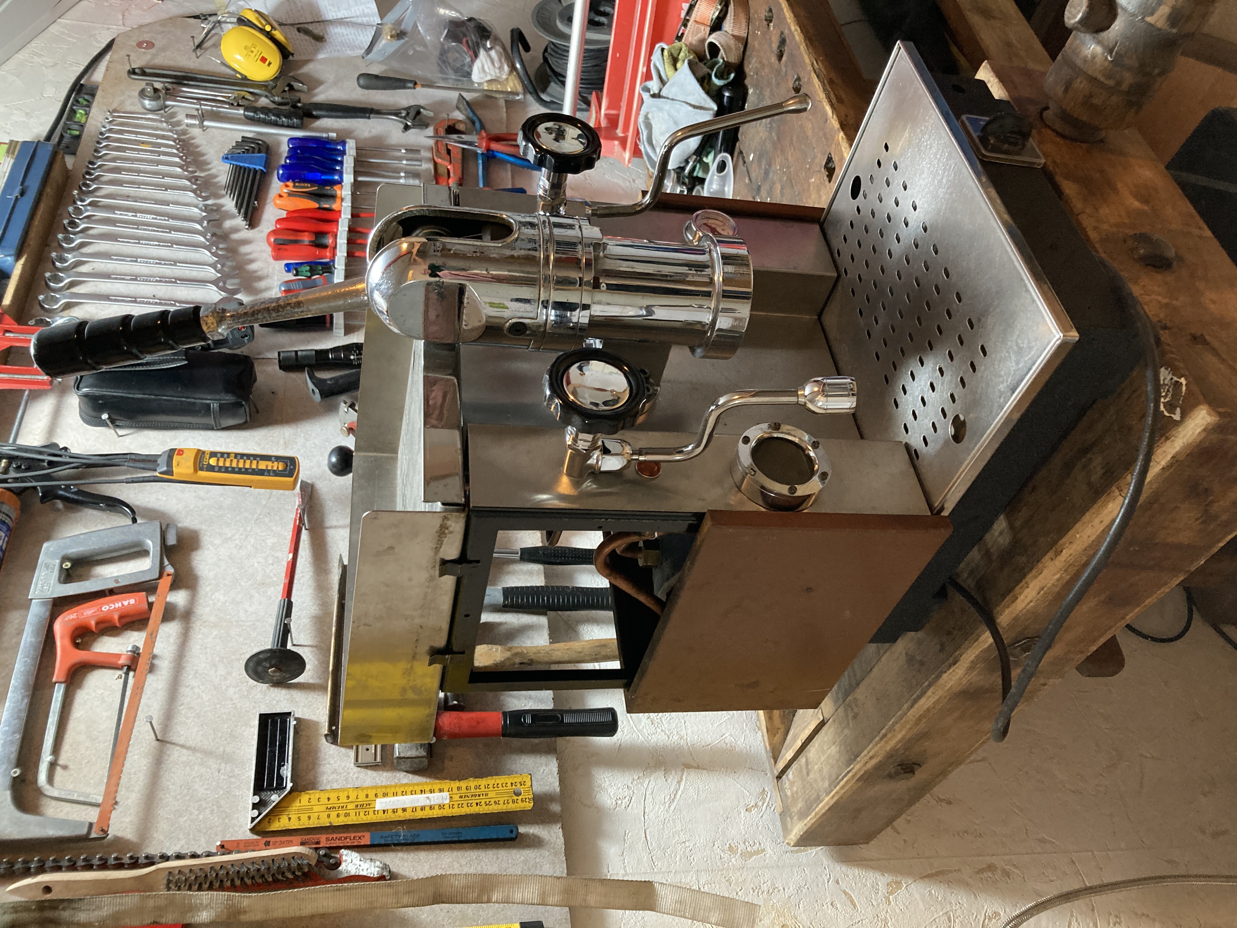 In 2023 heb ik de machine volledig gestript, ontkalkt, schoongemaakt, pakkingen en o-ringen vervangen en veel nieuwe onderdelen gemonteerd.