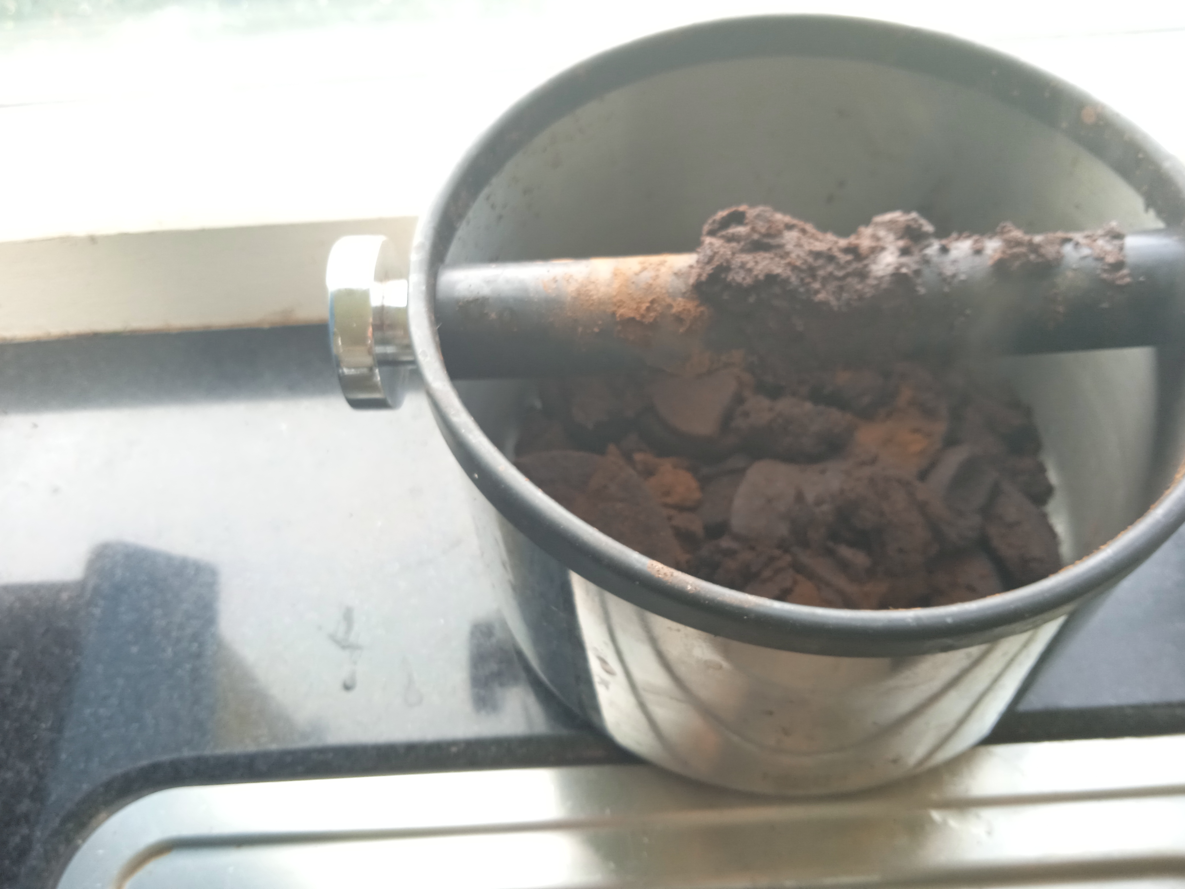 Het aanrecht is een grote bende.Water,koffiepoeder.Maar dat zal ongetwijfeld aan mezelf liggen.