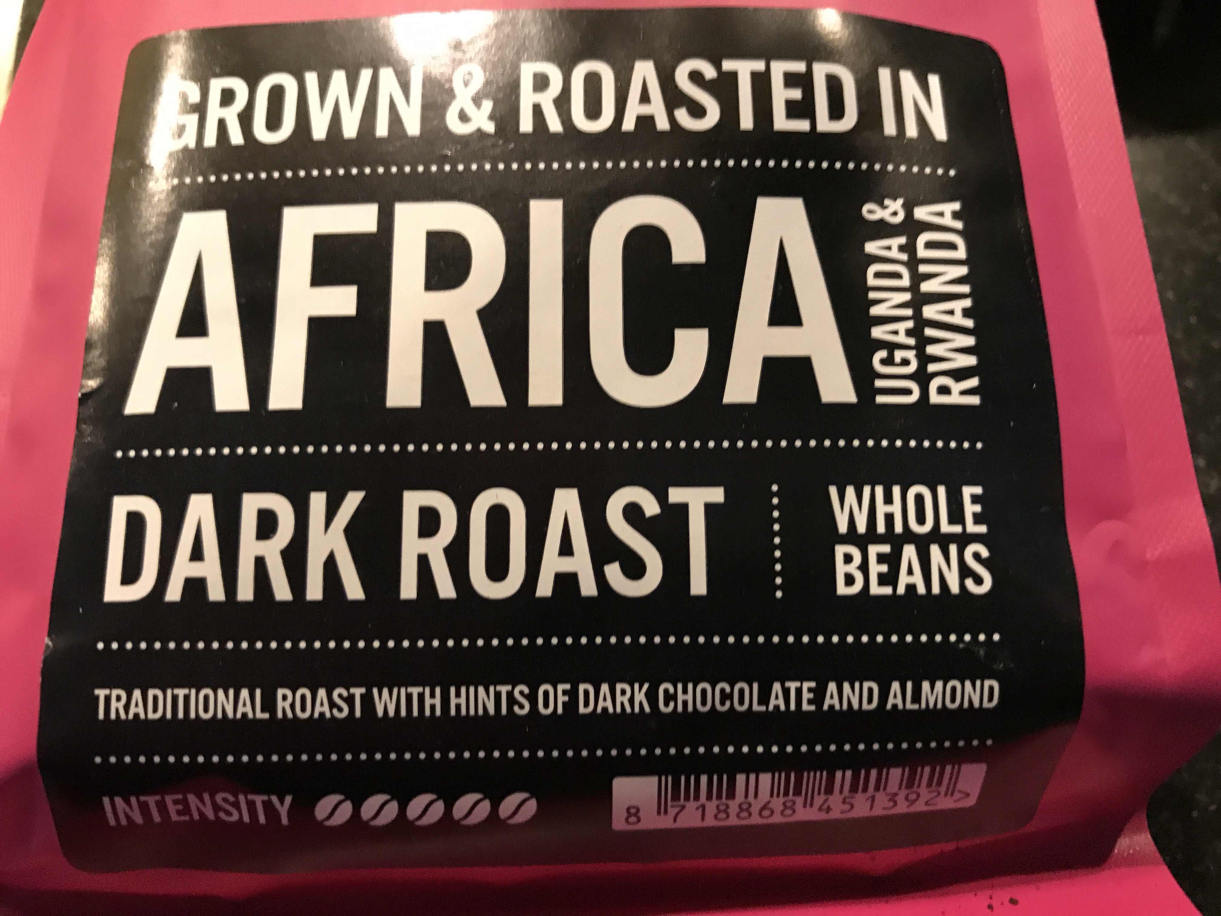 Ik ben begonnen met de Dark Roast. De beschrijving daarbij van de website: ‘Kan het je niet sterk genoeg? Dan hebben we deze koffie voor jou gemaakt. Step into the Dark en geniet van een super intense, volle, lekkere bittere koffie met aardse aroma’s en pure chocoladesmaken. Italian coffee, eat your heart out. We present to you: Afrikaanse Dark Roast koffie.’