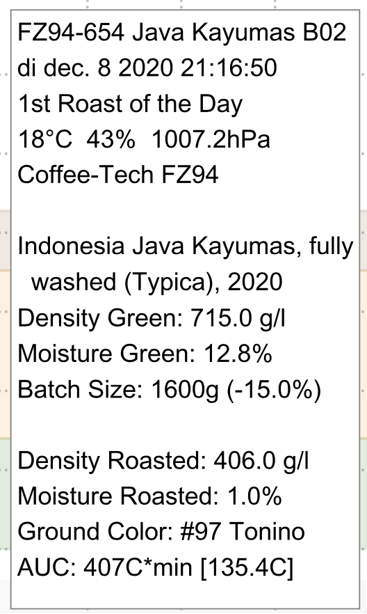 Branddatum keurig vermeld op kaartjes in een sleuf van 2 x 250 gr hersluitbare koffiezakjes. Niet goedkoop, maar in dit geval beter duur als niet te koop. 13 gram koffie, 30 sec 32 gr koffie. Heb nog niet geklooid met temperatuur, maalgraad en dosering. Eerste poging.