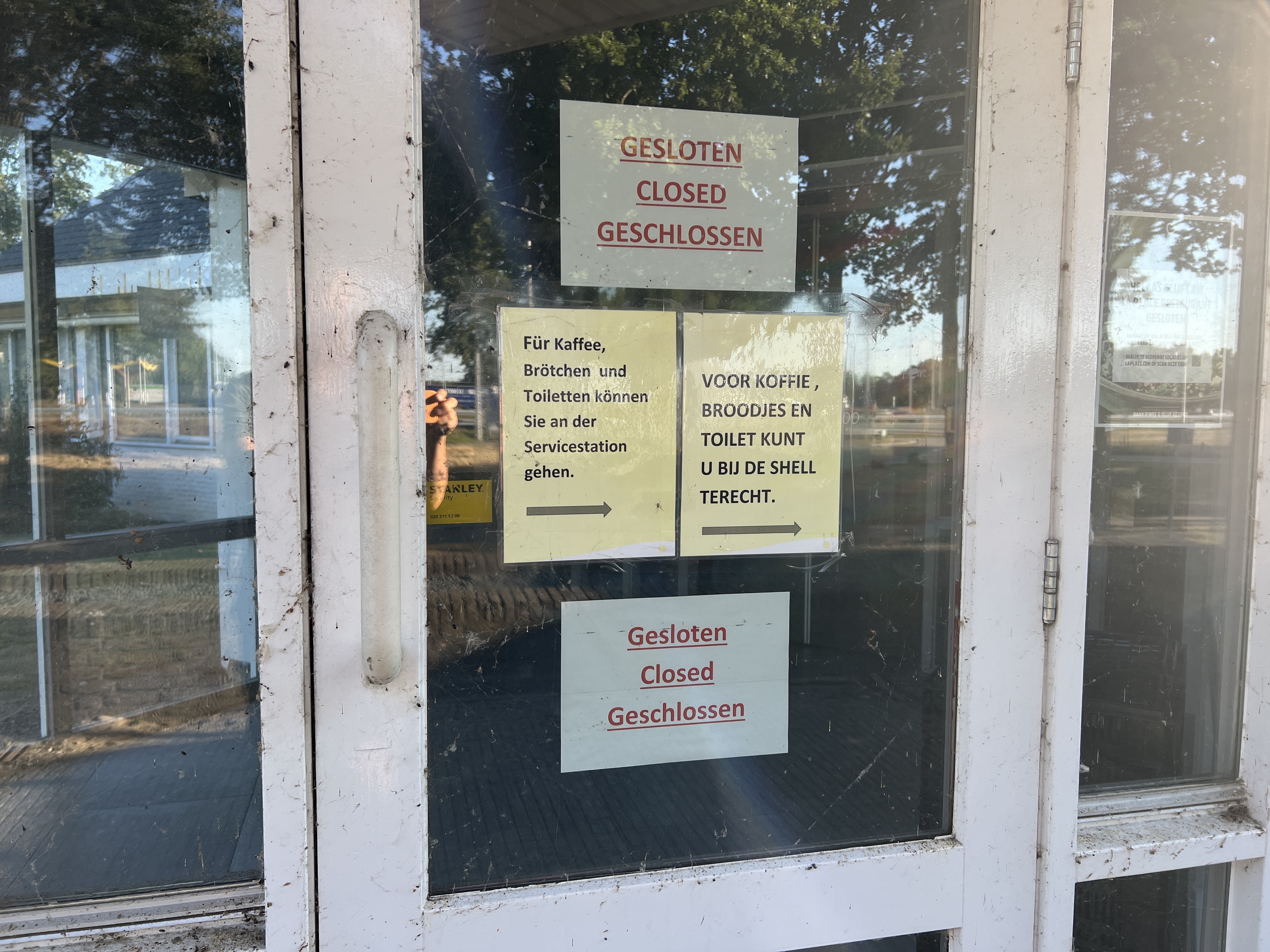 Wat ik pas echt griezelig vond was een boer die verse groente en fruit aan leek te bieden middels grote borden met daarbij NL vlaggen die nu ineens correct waren opgehangen, dus ondersteboven van ondersteboven, blauw onder.