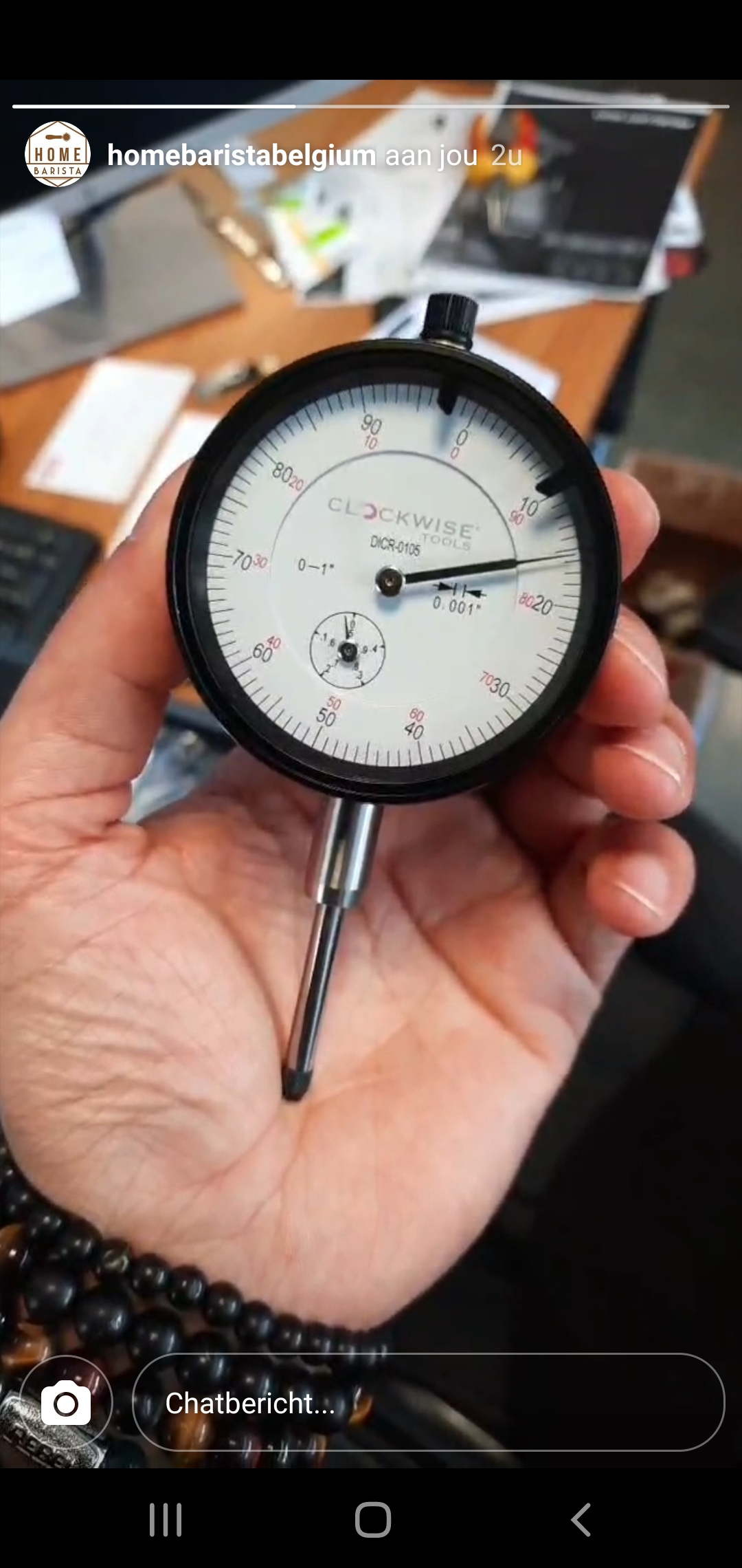 HBB gebruikt voor de alignment check een meetklok waarmee ze heel precies de uitlijning van de maalschijven en de afwijking van de as kunnen controleren. Bij alle malers die zij ombouwen op SSP wordt op de uitlijning met behulp van deze tool geoptimaliseerd. Mooie service!