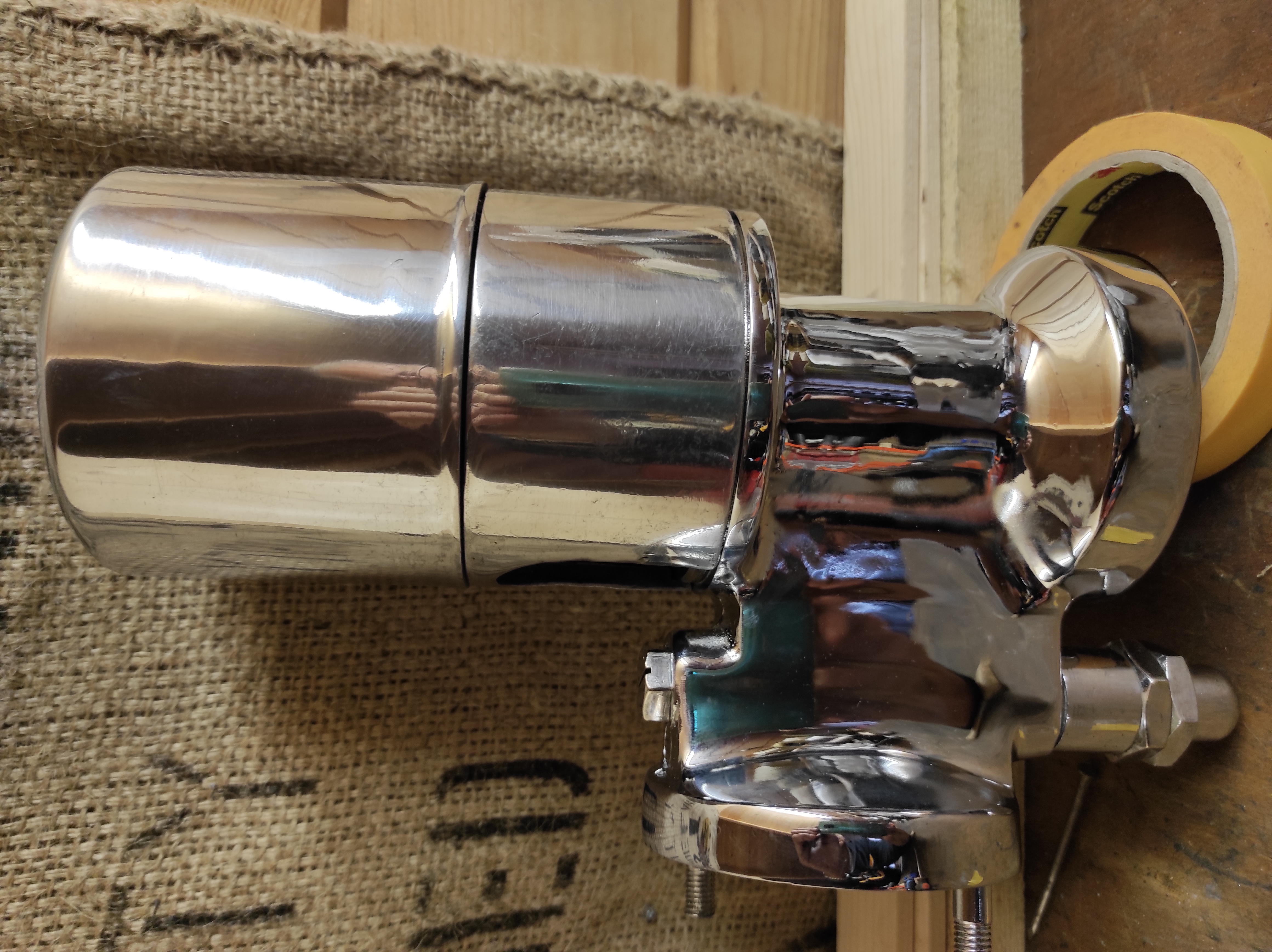 34Best wel.Is wel een kwaliteit beter dan wat op een espressomachine zit die je nieuw koopt. Misschien dat ik het aluminium toch weer mat maak. Ben zelfniet echt liefhebber van chroom.