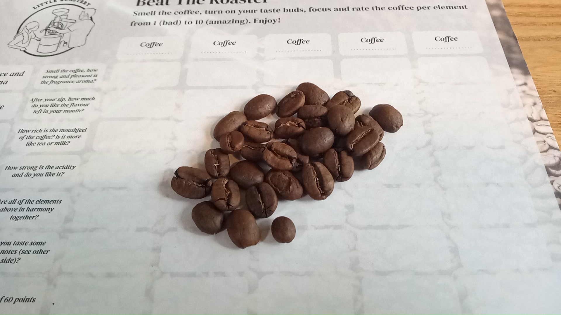 je fotos en ervaringen lijken mij prima in orde. Aanvullend zit er bij mijn bonen ook een kaart met een beoordeling, heb jij die ook?