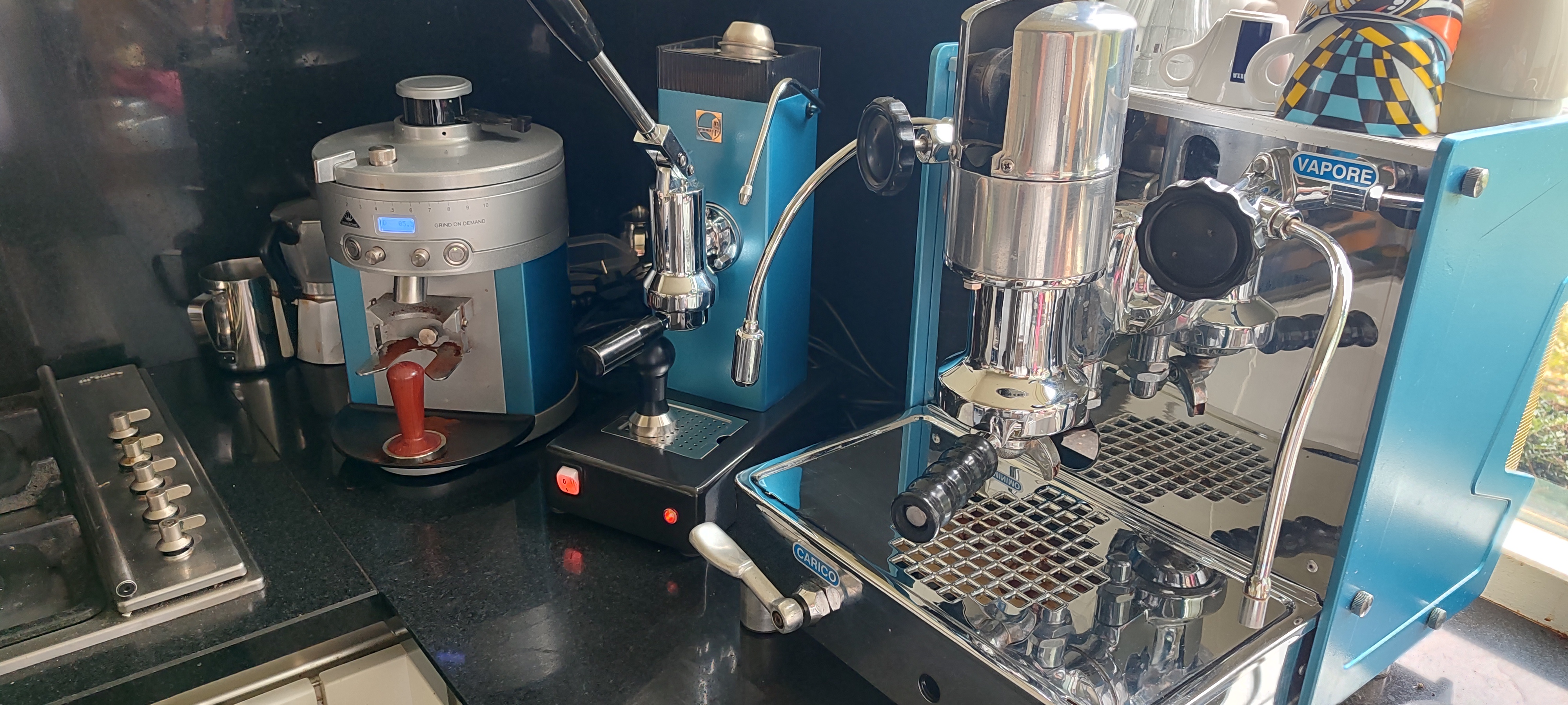 Machine voor mijn vrouw: QuickMill 3000. Werkruimte: Rancilio Silvia PdG V2 en La Pavoni Europiccola.