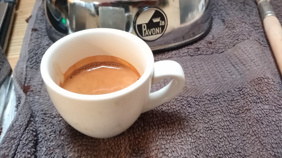 Een heerlijke aardse naar chocolade smakende traditionele espresso van Fascino, de Emporio. Op de Pavoni, 14 gram in 32 uit in 35 seconden.