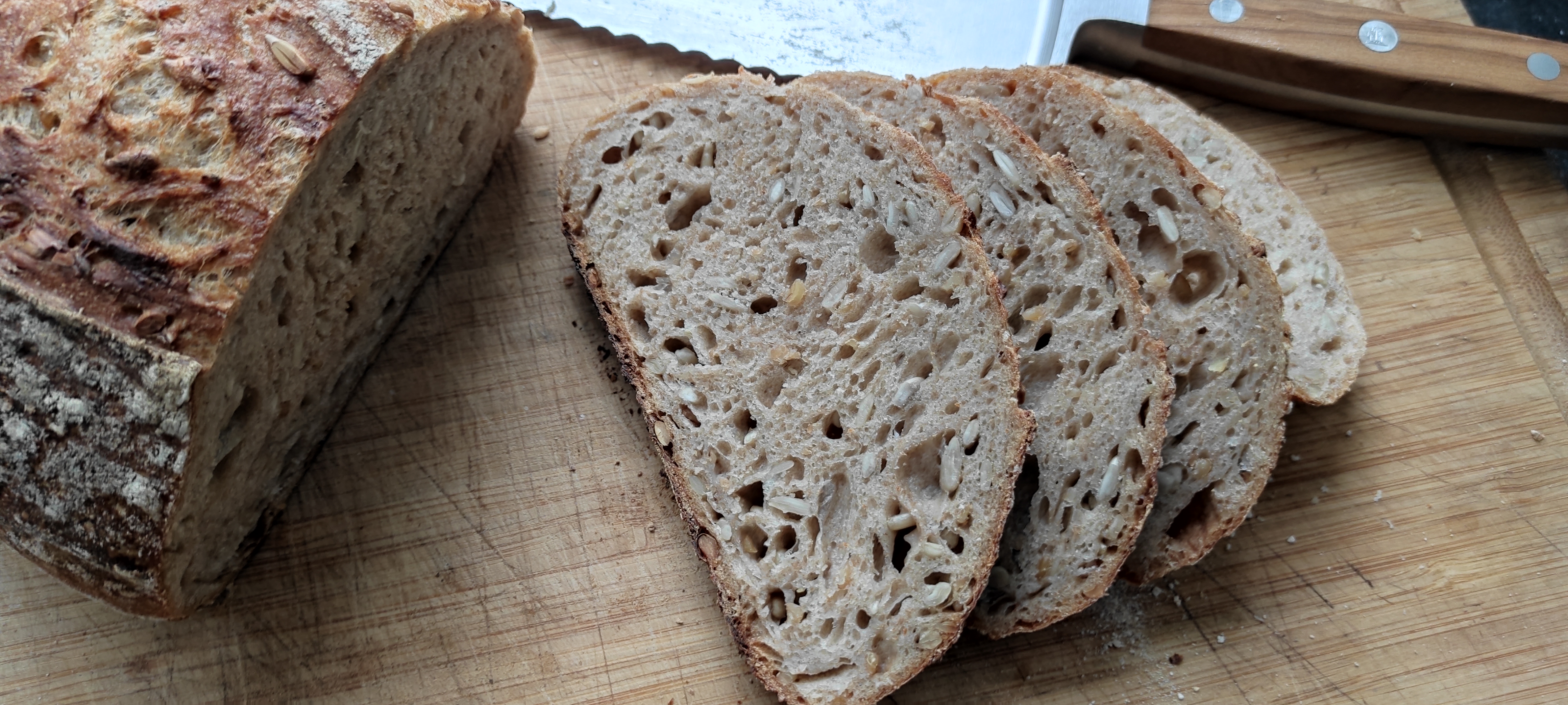 Ja, twee jaar geleden weer geprobeerd zuurdesembrood te bakken. Dat is me niet gelukt en had op dat moment het geduld niet en die stomme broodbakmachine beviel me ook niet.
