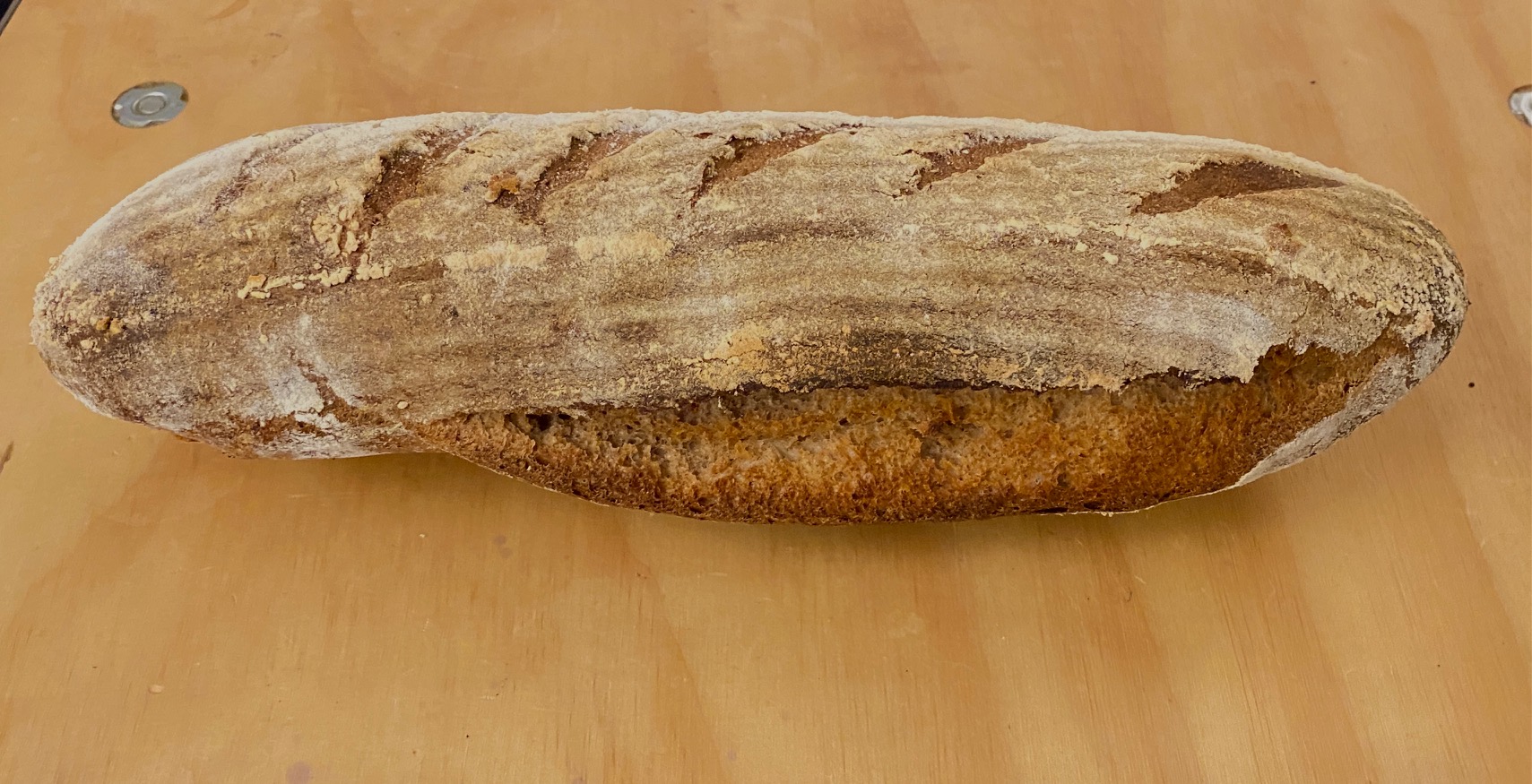 Mooie krokante korst met al die mooie gaten erin. Het lijkt of brood ook lekkerder smaakt als die gaten erin zitten, zoals bij een ciabatta. Mooie brood dit.