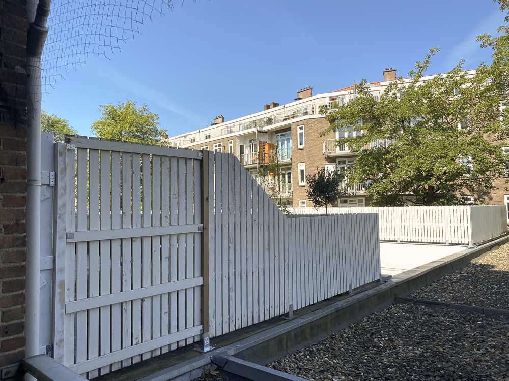De eerdere buurman had al een wat hogere schutting laten plaatsen. Hij was ontzettend aardig, zei bijna nooit iets maar was wel enorm grappig. De enkele keer dat ik bij hem en zijn vrouw op bezoek was zat hij vnl zwijgend te drinken en de 'vapen'. Nadat hij een einde aan zijn leven had gemaakt en we hem in de kamer vonden werd alles leeggeruimd en verkocht en nu hebben de nieuwe bewoners, jongelui, de schutting nog iets verhoogd. Erg prettig, zo kunnen we over en weer doen alsof we alleen zijn wat toch vaak het fijnste is.
