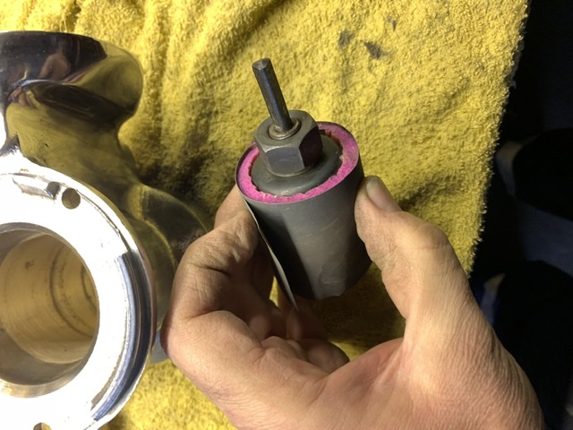 Van een gatenboor en vilt en #600 polijstpapier mn eigen “hoon” gemaakt.