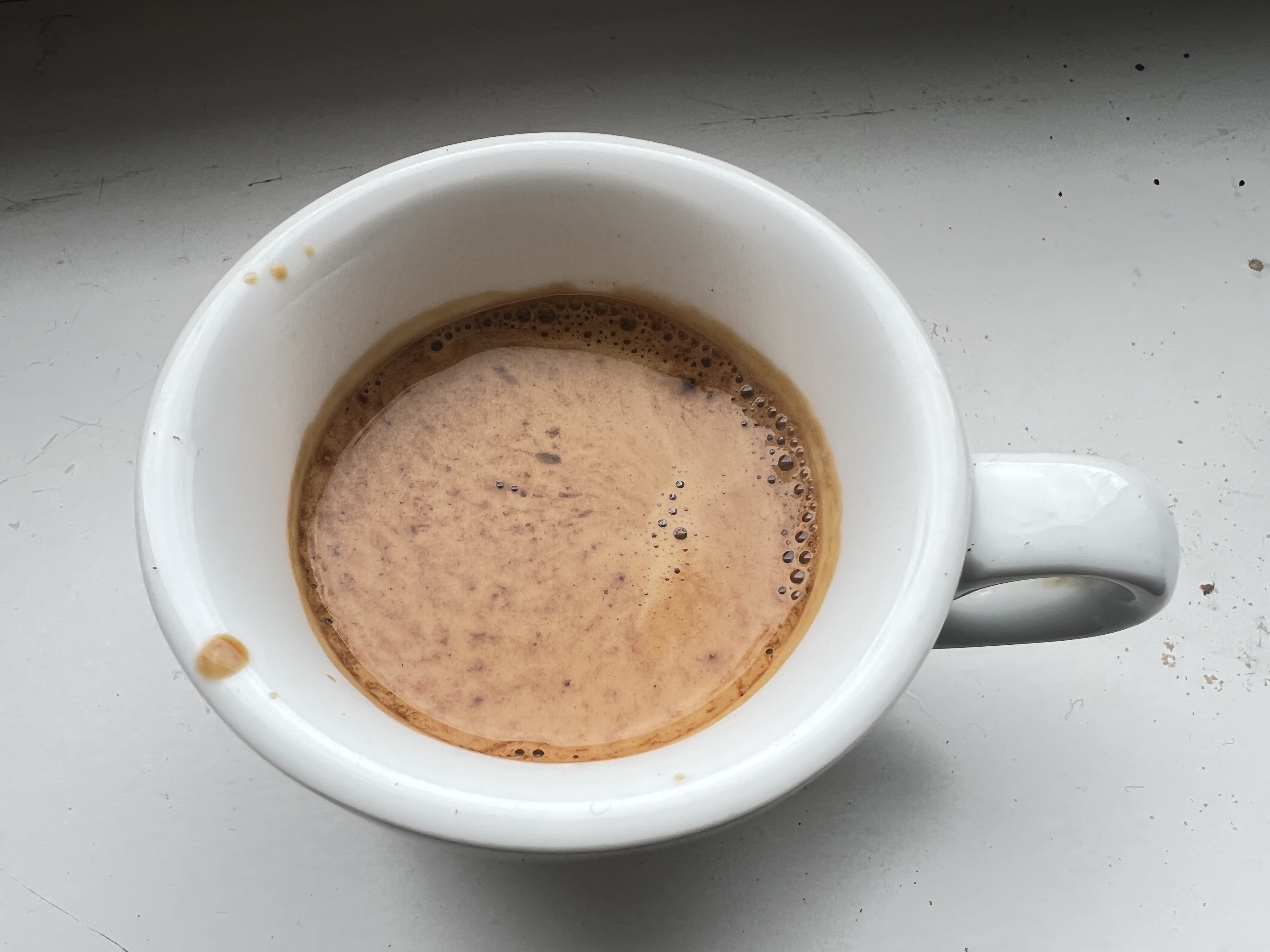 De laatste dagen wat geexperimeerd met verschillende boontjes, waaronder die van Frans en Pti. Uit het boontje van Frans (een Ethiopia Yirgacheffe) kon ik geen echte tijger krijgen, ondanks ruime variatie in maalgraad en dosering. Dit boontje was/is dan wel weer bijzonder smakelijk.