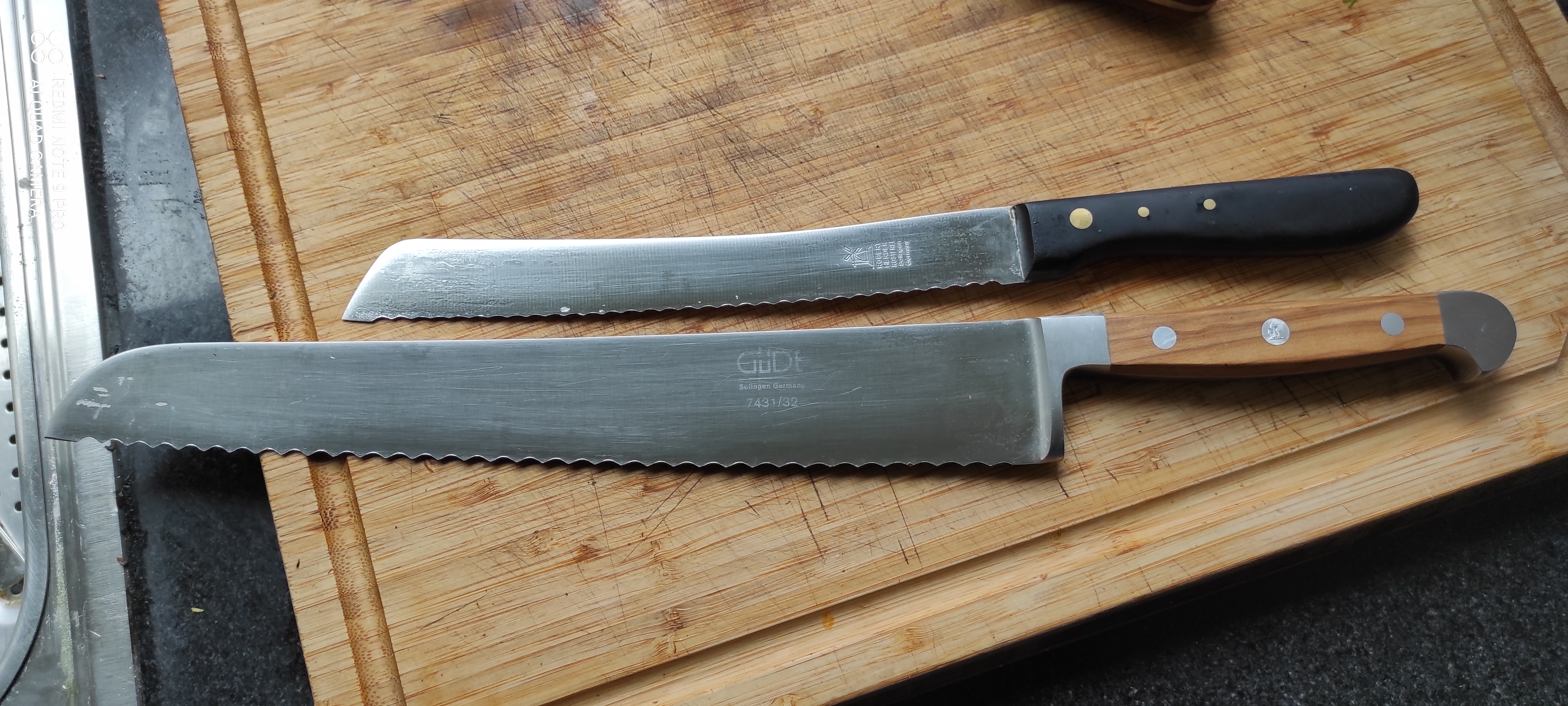 Exact dat mes.Probleem voor mij was als het niet in een messenblok kan ik het niet ga gebruiken.Ik snij wel een keer of 6 per dag brood.Dan moet het bij de hand zijn.Op de snijplank laten liggen is geen optie daar het dan onherroepelijk op de grond gaat vallen.