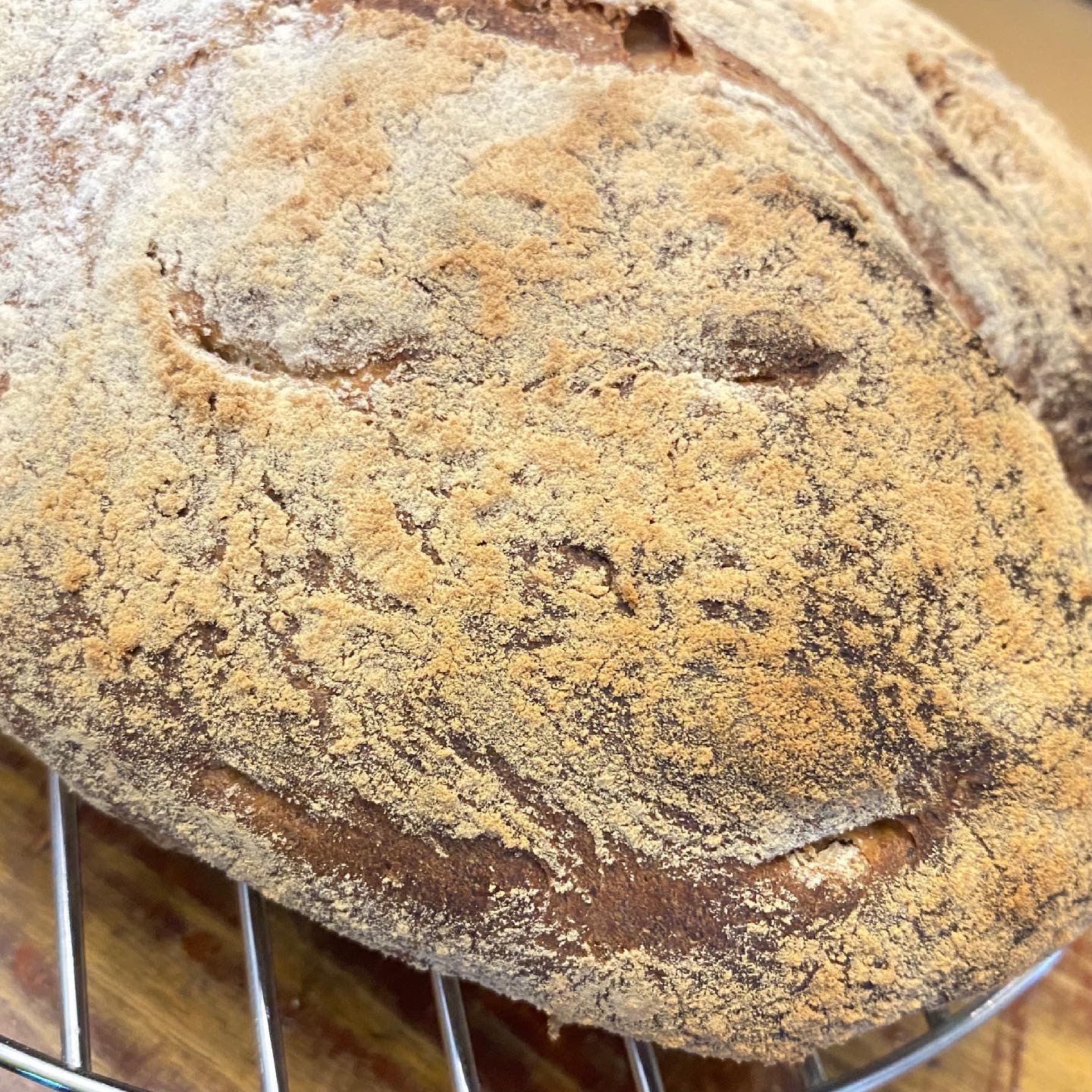 Maar, als ik dus Honing gebruik (de vloeibare vorm) dan ruikt het gist (en het hele huis) tijdens het activeren enorm naar rijp fruit, en die geur blijft in en aan het brood 'hangen' ook na het bakken, je kan het zelfs proeven.