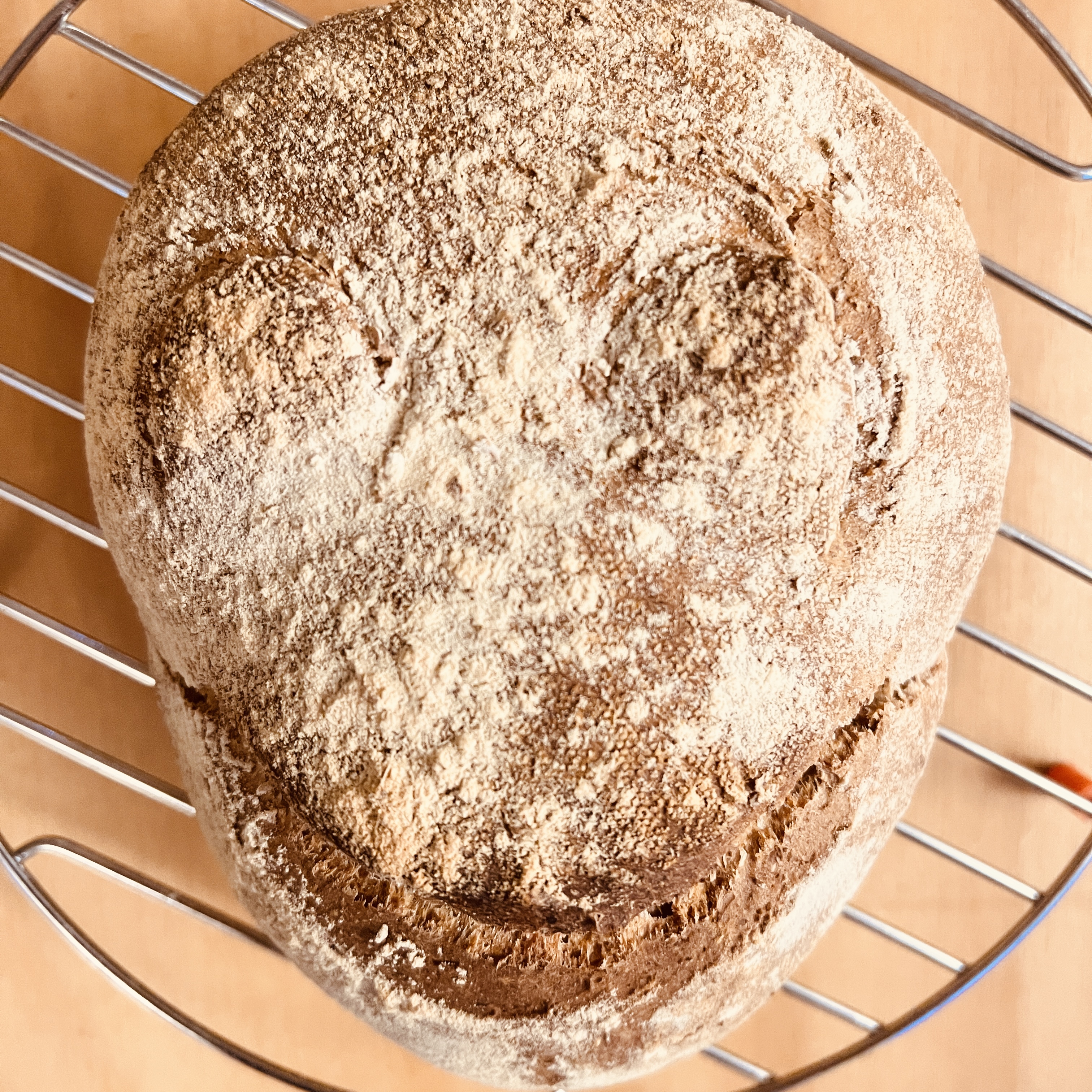 Hier eindelijk de tijd gehad om met de nieuwe starter aan de slag te gaan. Een beschimmeld rijsmandje maakte dat een batard last minute een boule werd, maar overall redelijk tevreden!