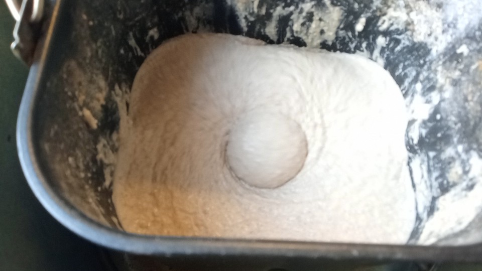 Hier zit het deeg net in de machien.