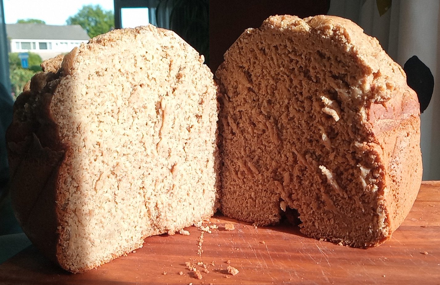 En nu zonder gist maar met baksoda en karnemelk.Dirk Jan schreef: zo 03 apr 2022, 18:56 Dan hier ook mijn brood. Gistbrood, dat wel. 150 gr havemeelr, 150 gr speltmeel, 250 gr rijstmeel, 50 gr boekweitmeel, 4 gram zout, 2 gram gist en 600 gram water. In de broodmacine op stand Basis voor brood van 800 gram, en Mid qua korst. Na 3 uur komt dit er uit.