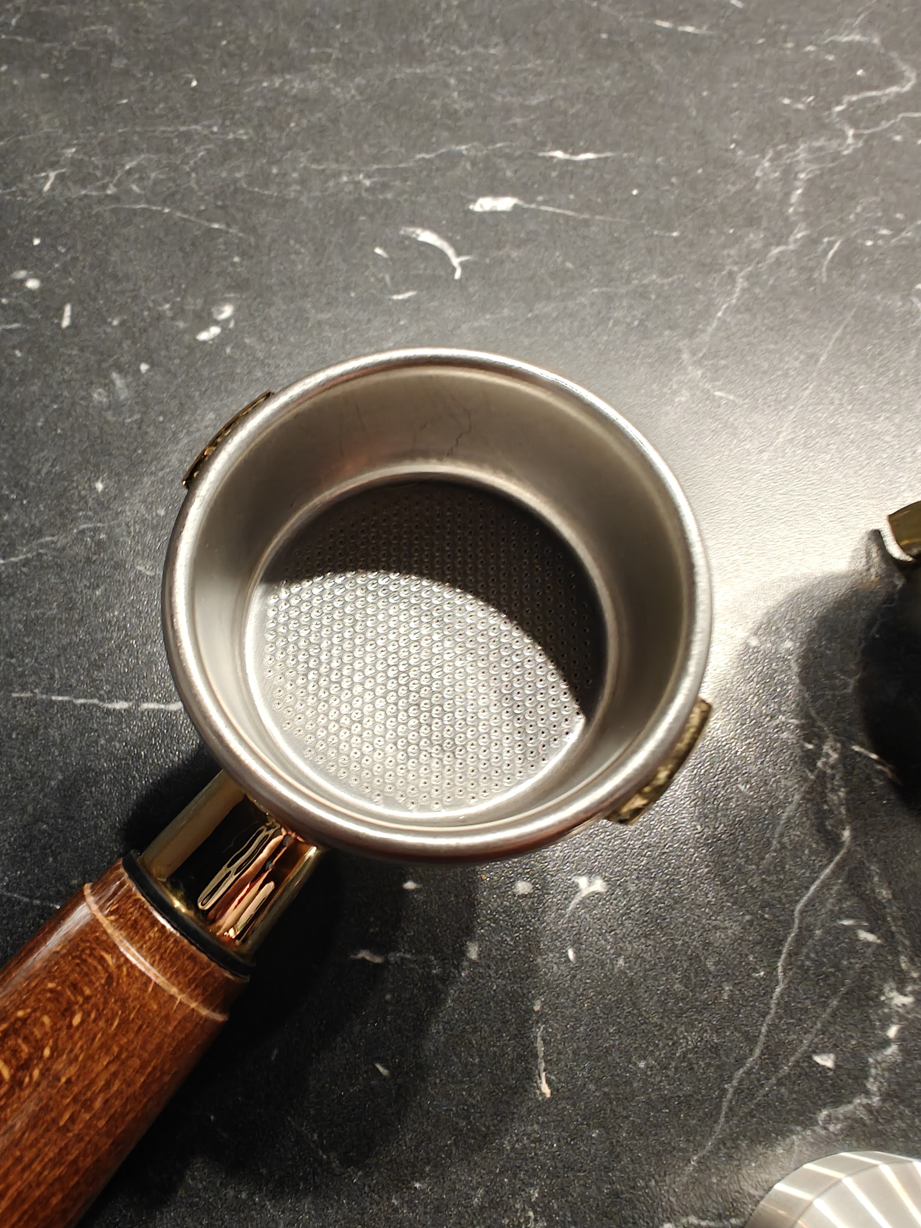 Ik zorg dat de groep snel (dus niet langzaam) goed warm is door een paar dry pumps te doen. Met de standaard pf en standaard bakje doseerde ik 12 gram.