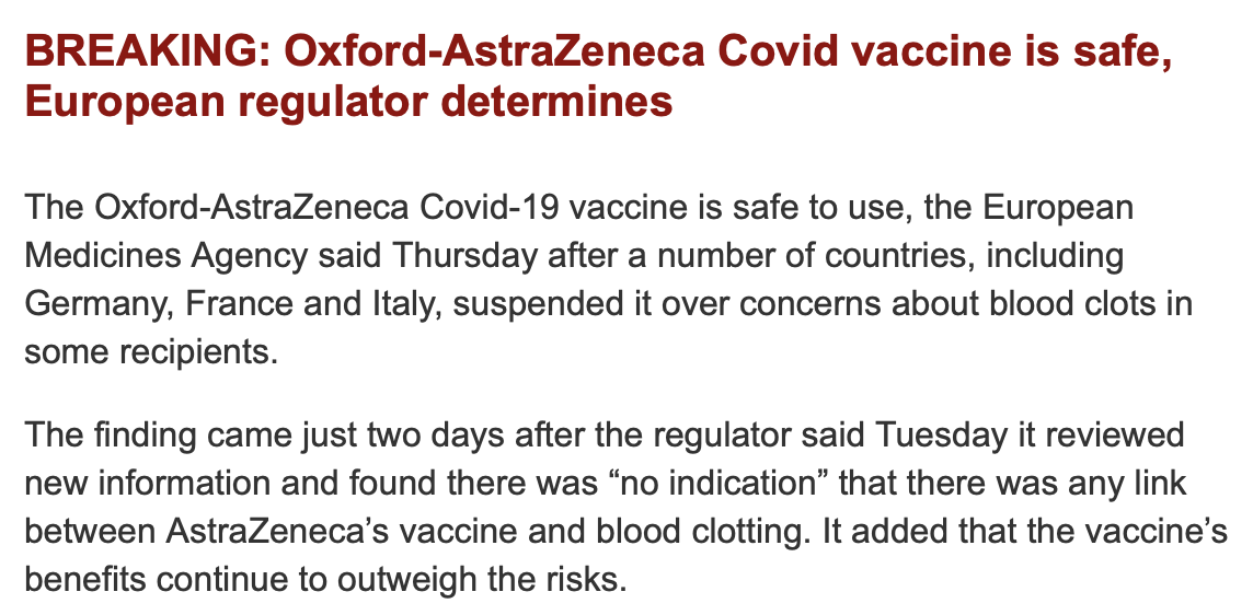 Ik denk ook dat de trombone niks met de prik te maken heeft, al sluit ik het ook weer niet uit natuurlijk.Kuipers sluit het niet uit, maar "mogelijkerwijs heeft het helemaal niets met de vaccinatie zelf te maken", zegt hij. Op basis van het kleine aantal meldingen had hij "nog twee keer nagedacht" over het besluit om het prikken te staken.