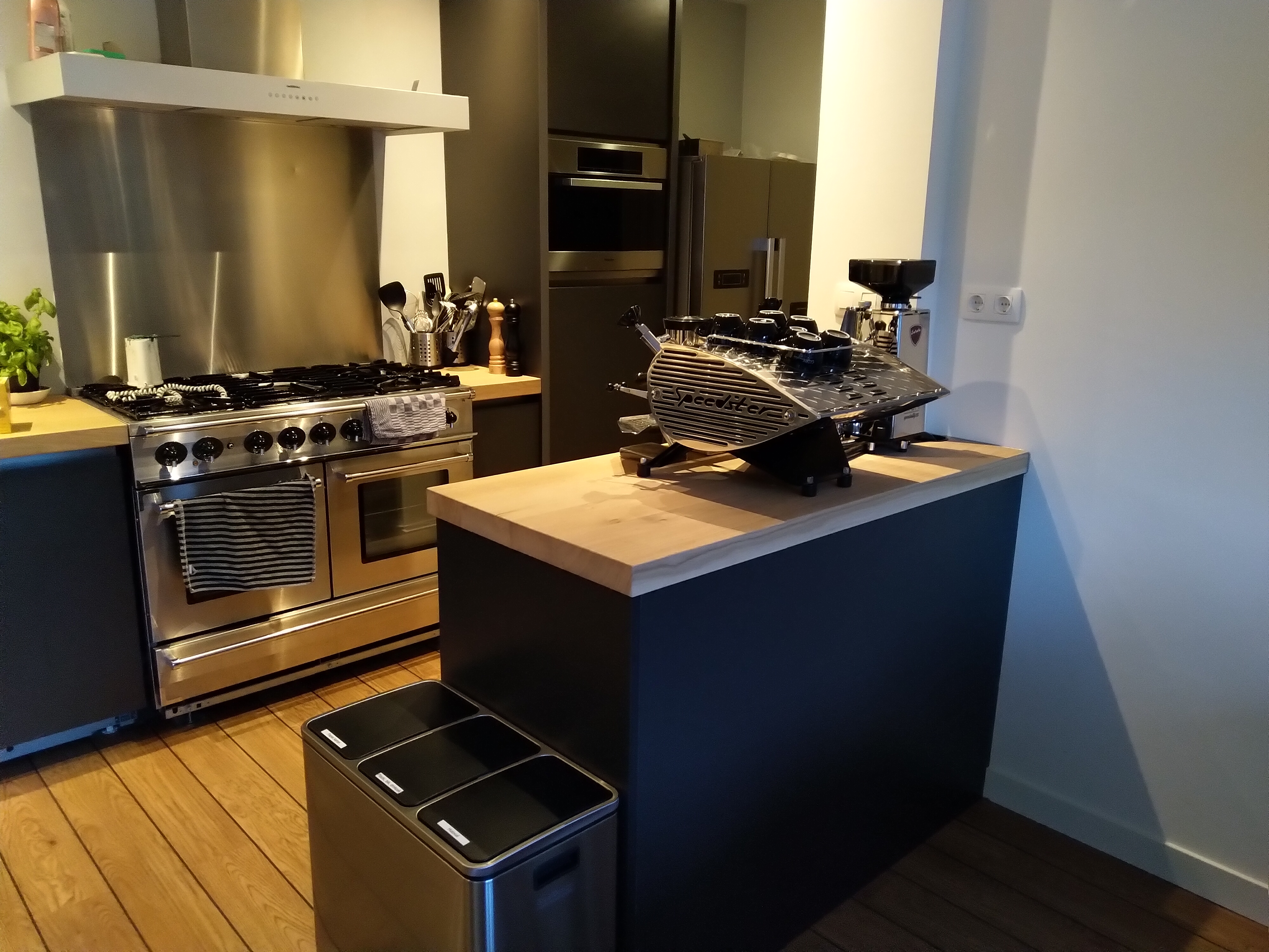 66Waanzinnig! Toen Liander was geweest voor de aansluiting (lang verhaal...renovatie) als allereerste de espressogroep aangezet en de Speedster opgewarmd. Daarna is hij eigenlijk niet meer uit geweest. Het was wel weer even wennen én een nieuwe molen én een POMP machine. Nogsteeds netjes aan het wegen en was een beetje zoeken met temperatuur maar oe-la-la wat wordt de moeite beloond!