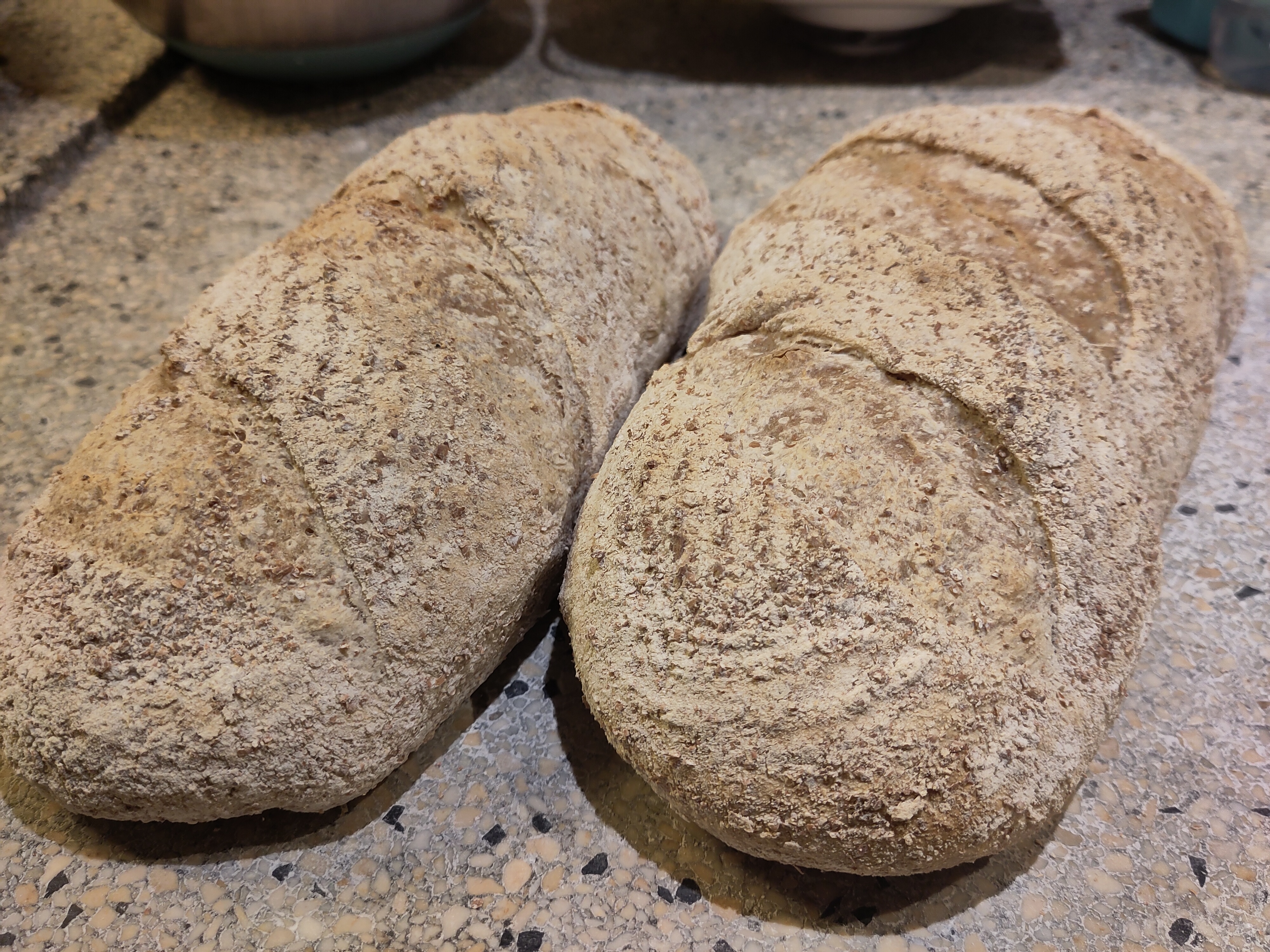 Twee speltbrood jes gebakken m.b.v. mijn oude Braun KM32.