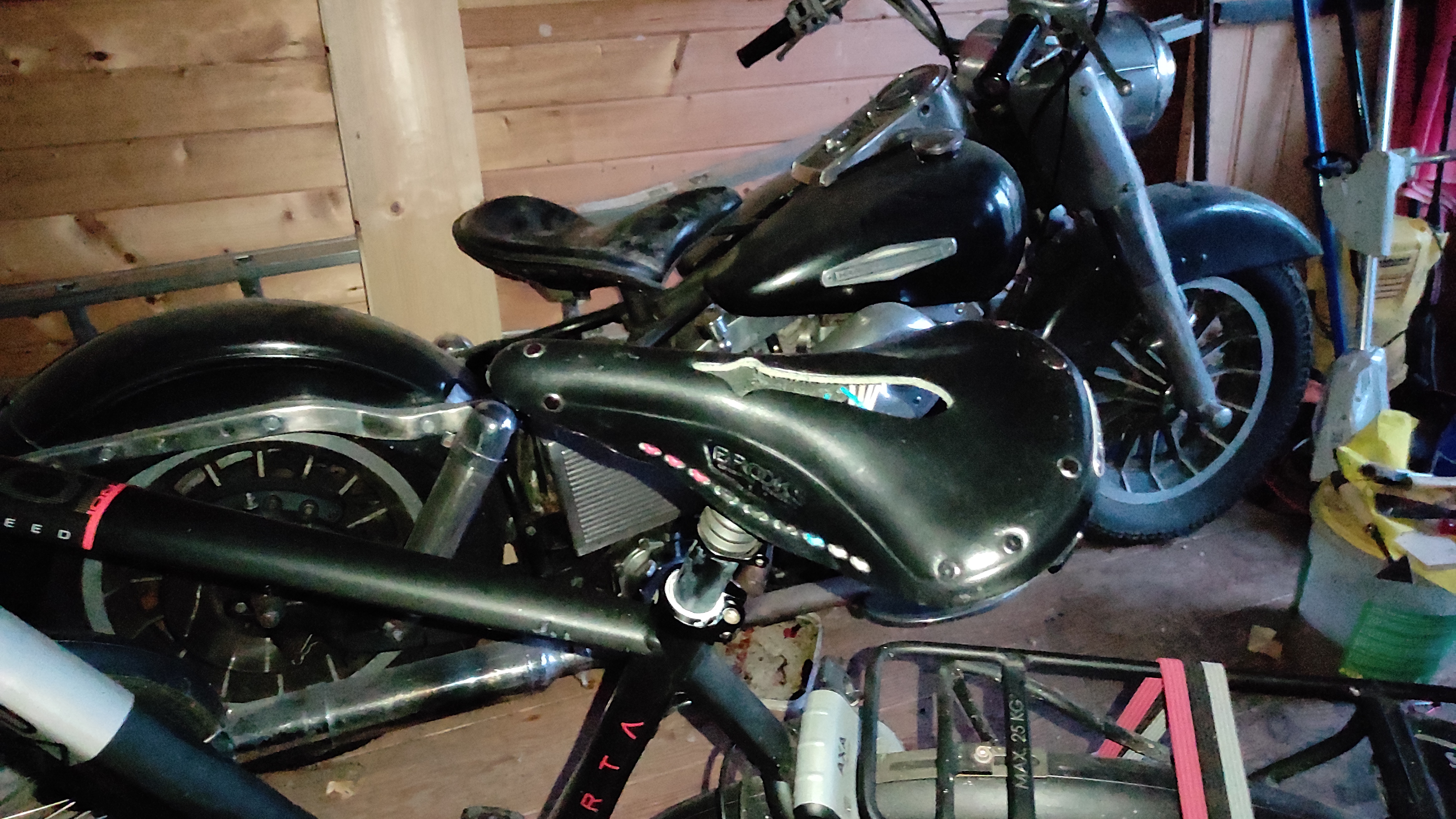 Mooie Harley, is dat nu een low tail? Ouderwets zadel en nieuw ogende wielen.