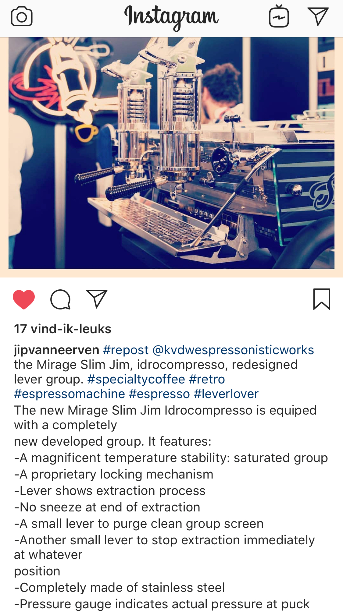 Re: World of Coffee 2018 RAI 21-23 Juni 92 door fransg Ik was op de WoC te laat bij de Acaia om een 'Cinco' te bemachtigen maar ik mocht er een vooruit-bestellen: Youtube: h[url]ttps://www.youtube.com/watch?v=r9C9pArTATo[/url] LONDINIUM R24 & VECTIS - etzMAX - Niche - Honne Hedone - COMPAK R120->GRRR - PUQpress - FZ94 - Tonino Citeer ma 02 jul 2018, 15:36