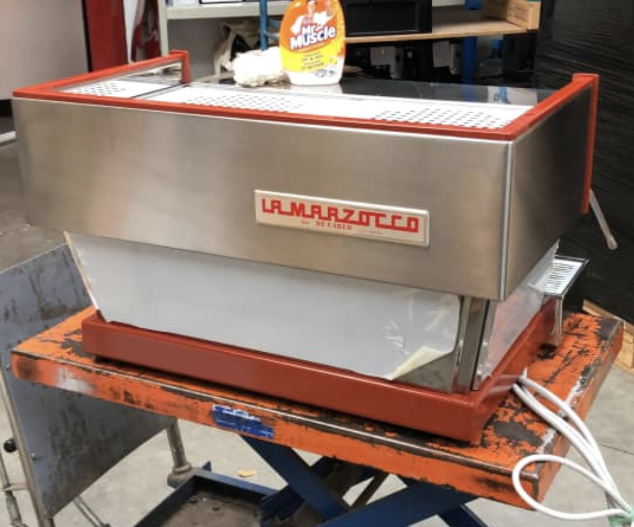 op FB schrijft hij: "La Marzocco Linea First Series 1992 serial number 1999. Brand new in factory foil. This machine was pre owned by a fanatic in Berlin. I spoke a lot of times about this machine when I saw the first pictures. The La Marzocco Linea First Series are hard to find because a lot of them were painted black after the new model was launched. This machine was build for a coffee roasting company but never reached the final destination since the day before yesterday. The machine is 100 % original and new."
