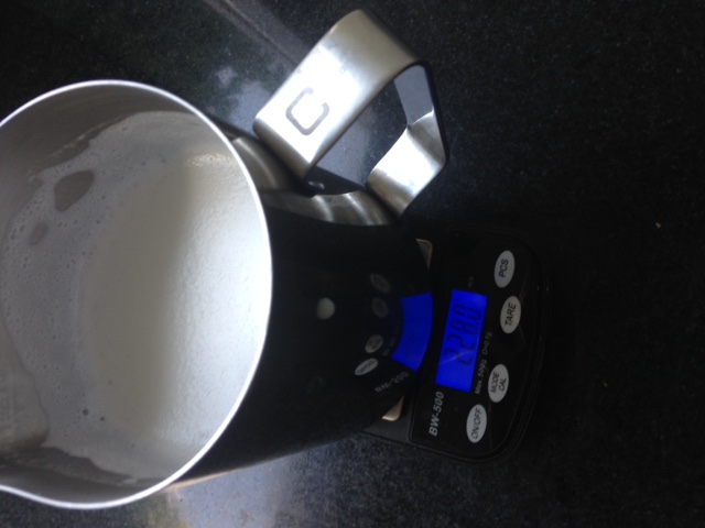 Met stomen heb ik net gemeten dat er op 200 g melk 30 gram water in de melk komt.