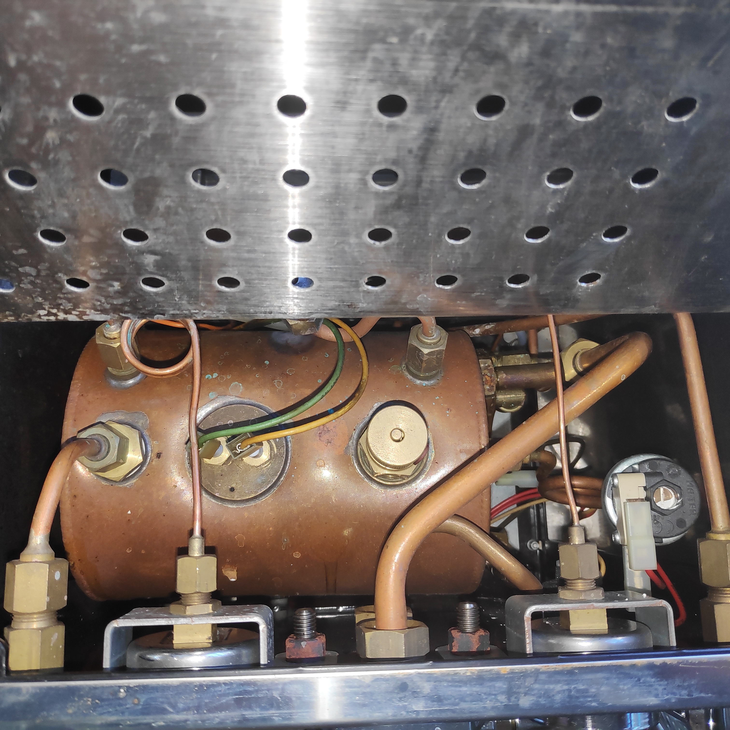 Waarschijnlijk loopt er een slangetje vanuit het binnenwerk terug het waterreservoir in? Als je dat slangetje volgt, waar die vandaan komt, dan zou je weleens bij een overdrukventiel uit kunnen komen en dan wordt al meer duidelijk.