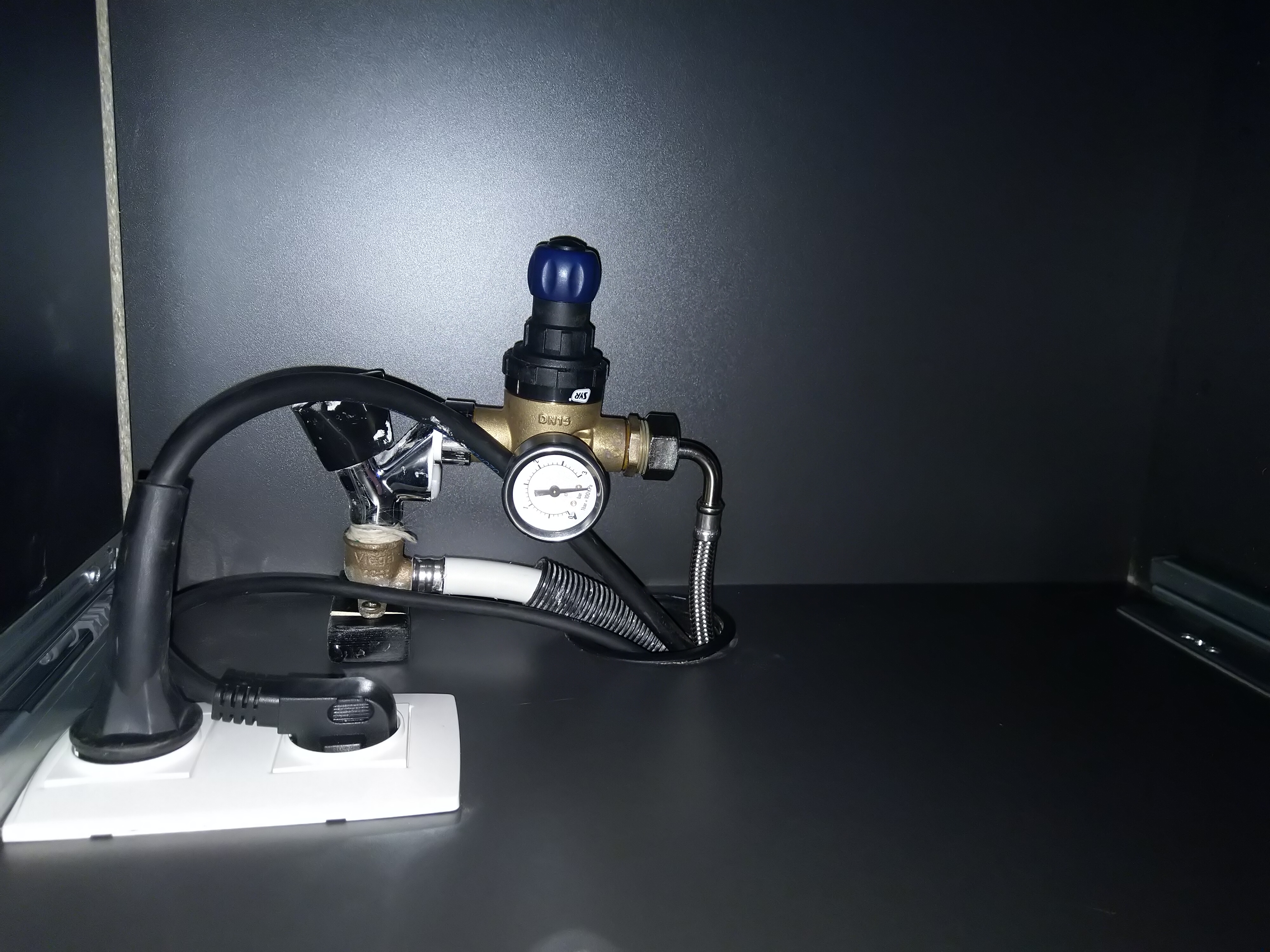 Met een kleine modificatie lopen alle leidingen onder de molen door de hoek in, nog steeds best opgeruimd al zeg ik t zelf.
