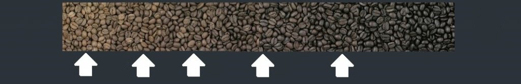 De pijl op de indicator geeft aan hoe we elke koffie branden dit kan zijn: