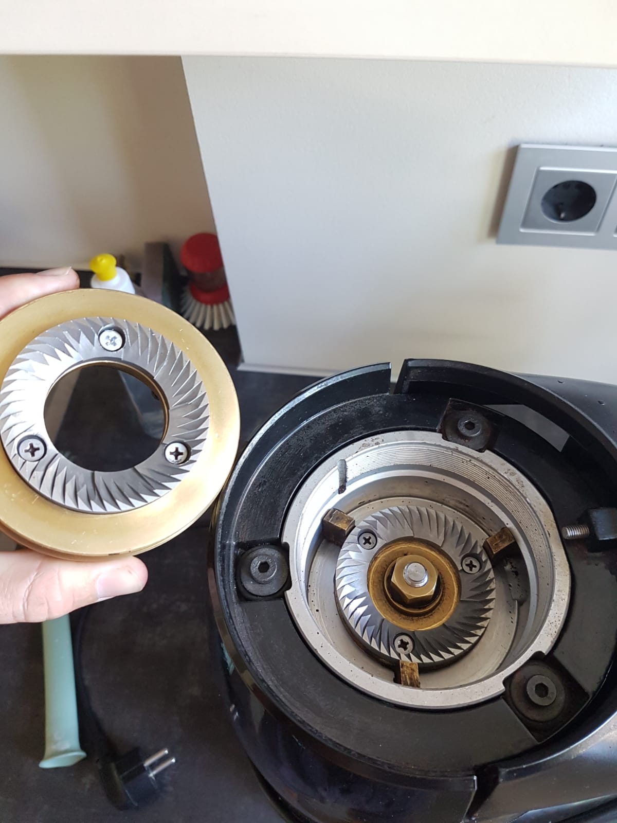 Ik heb een oude compak K6 maler gekocht en ben de maalschijven aan het vervangen.
