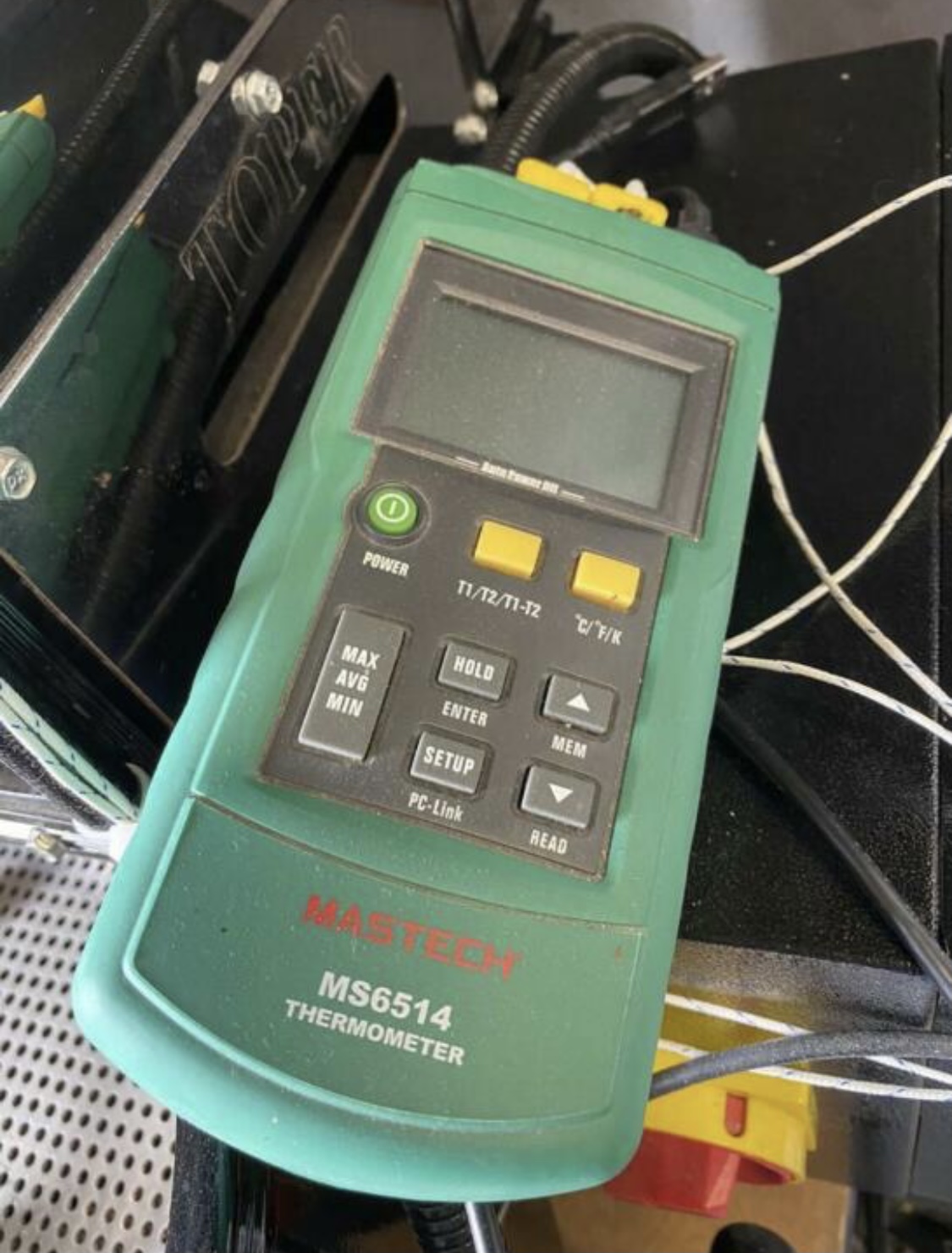Tevens is het voorzien van thermokoppels aangesloten op een externe thermometer.