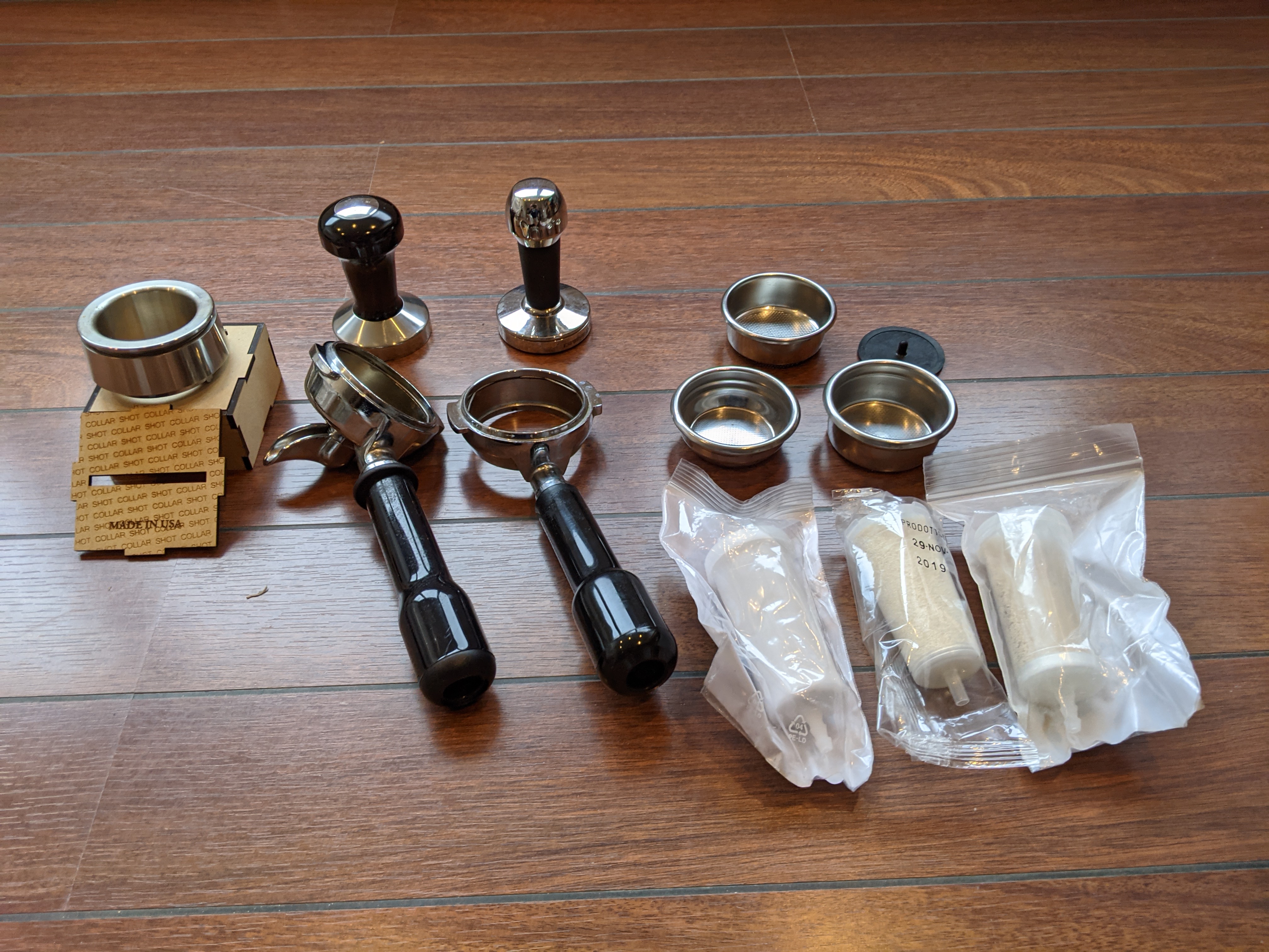 Het is een nette machine die in februari nog een groot onderhoud gehad heeft bij Casa Barista. Ik verkoop hem samen met de portafilters (naked en 1-uitloops), verschillende reguliere filterbakjes (o.a. 18 en 20 grams), een 16-18 grams IMS Competizione filterbakje en IMS douchescherm. Verder zowel een platte als curved tamper en een Shot Collar verdeler van St.Anthony https://stanthonyind.com/products/the-s ... 1978190921.