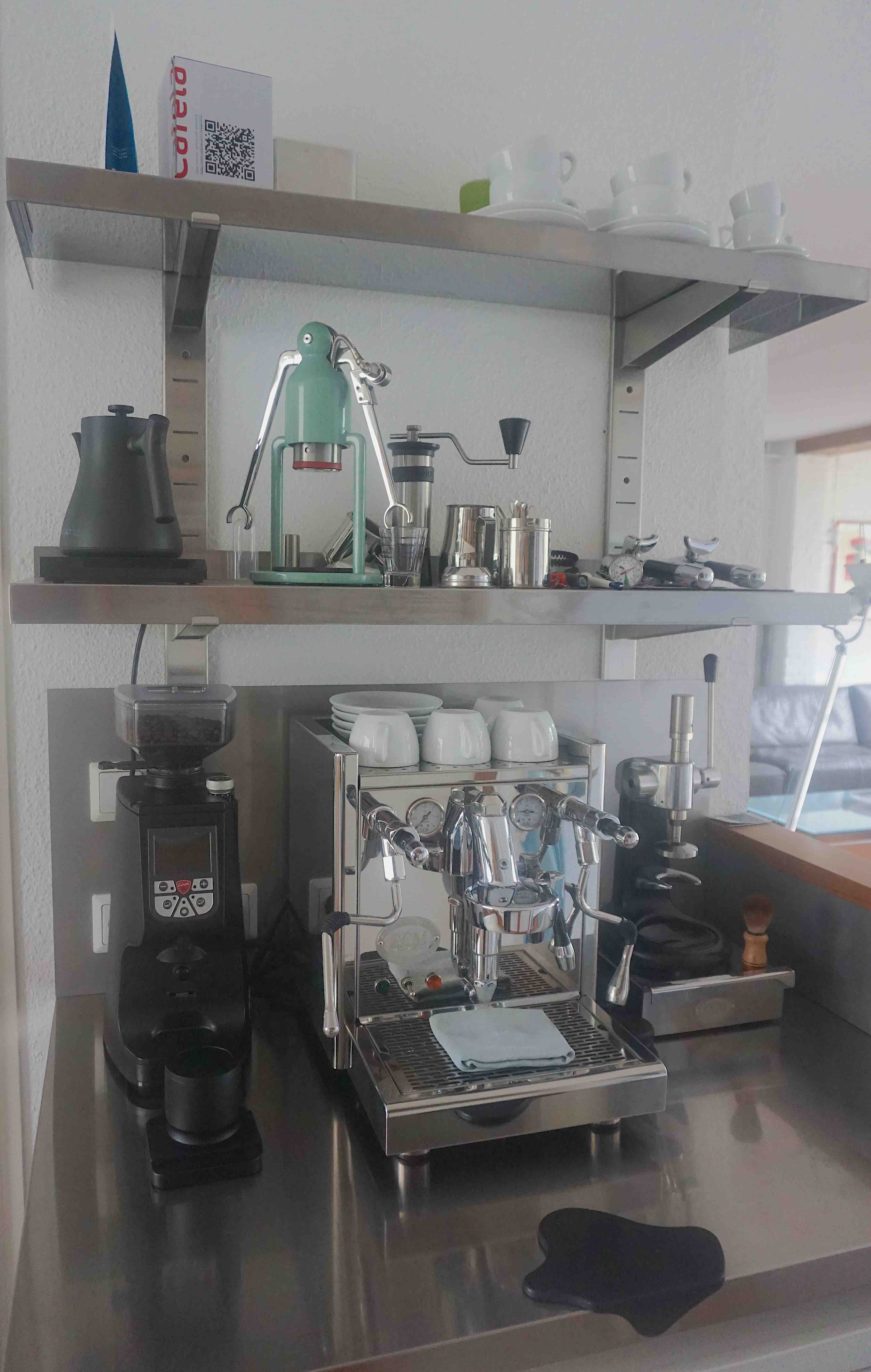 Op de foto hieronder staan al mijn koffiespullen uitgestald in de koffiehoek.