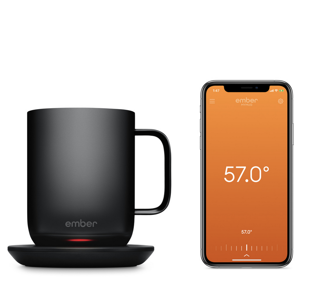 Met de Ember-mok voor thuis of op kantoor en de bijbehorende app voor iPhone of Apple Watch kun je nauwkeurig een temperatuur instellen, bijhouden hoeveel cafeïne je binnenkrijgt, instellingen voor favoriete dranken bewaren, de kleur van het ledlichtje instellen en nog veel meer. De Ember-mok zorgt ervoor dat je warme drank ongeveer anderhalf uur op temperatuur blijft, zodat die van de eerste slok tot de laatste druppel perfect warm blijft.