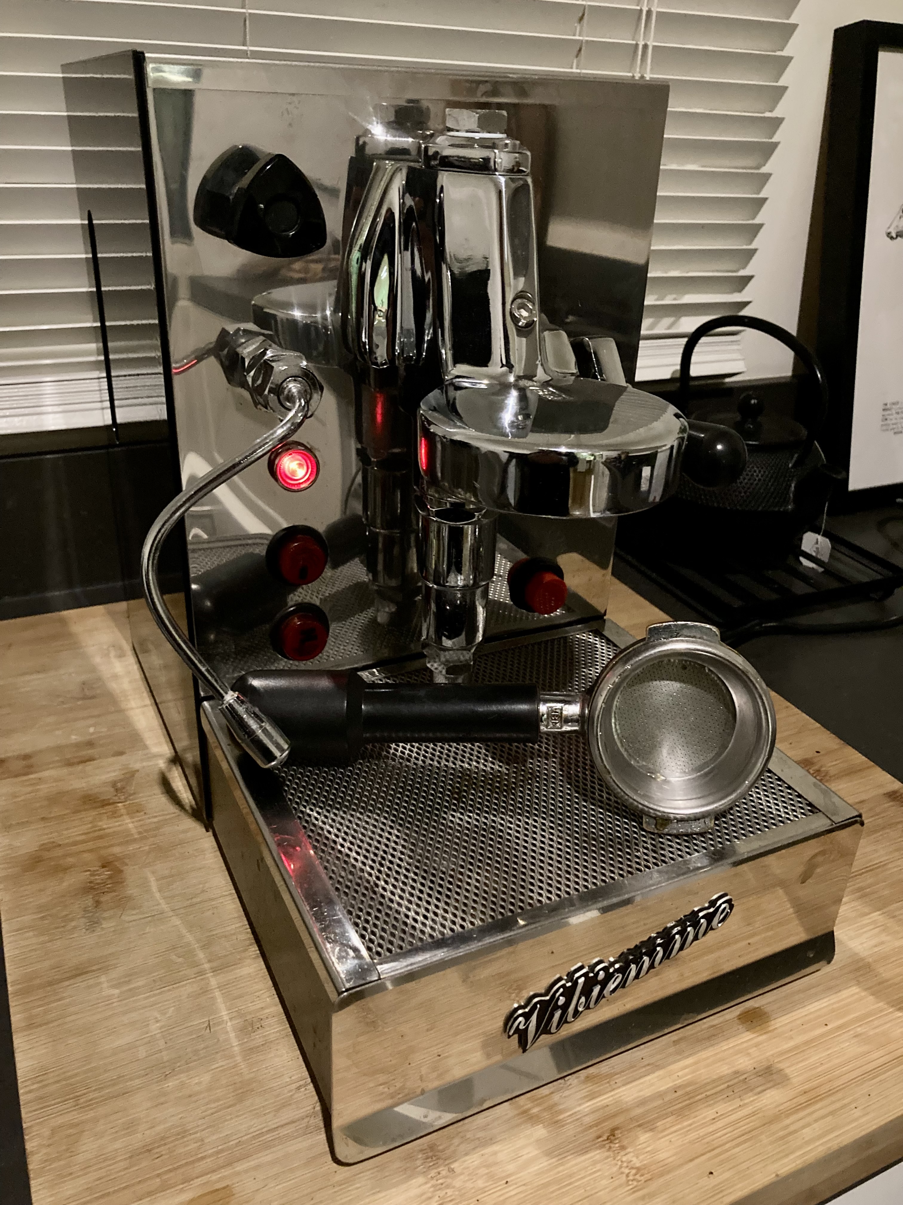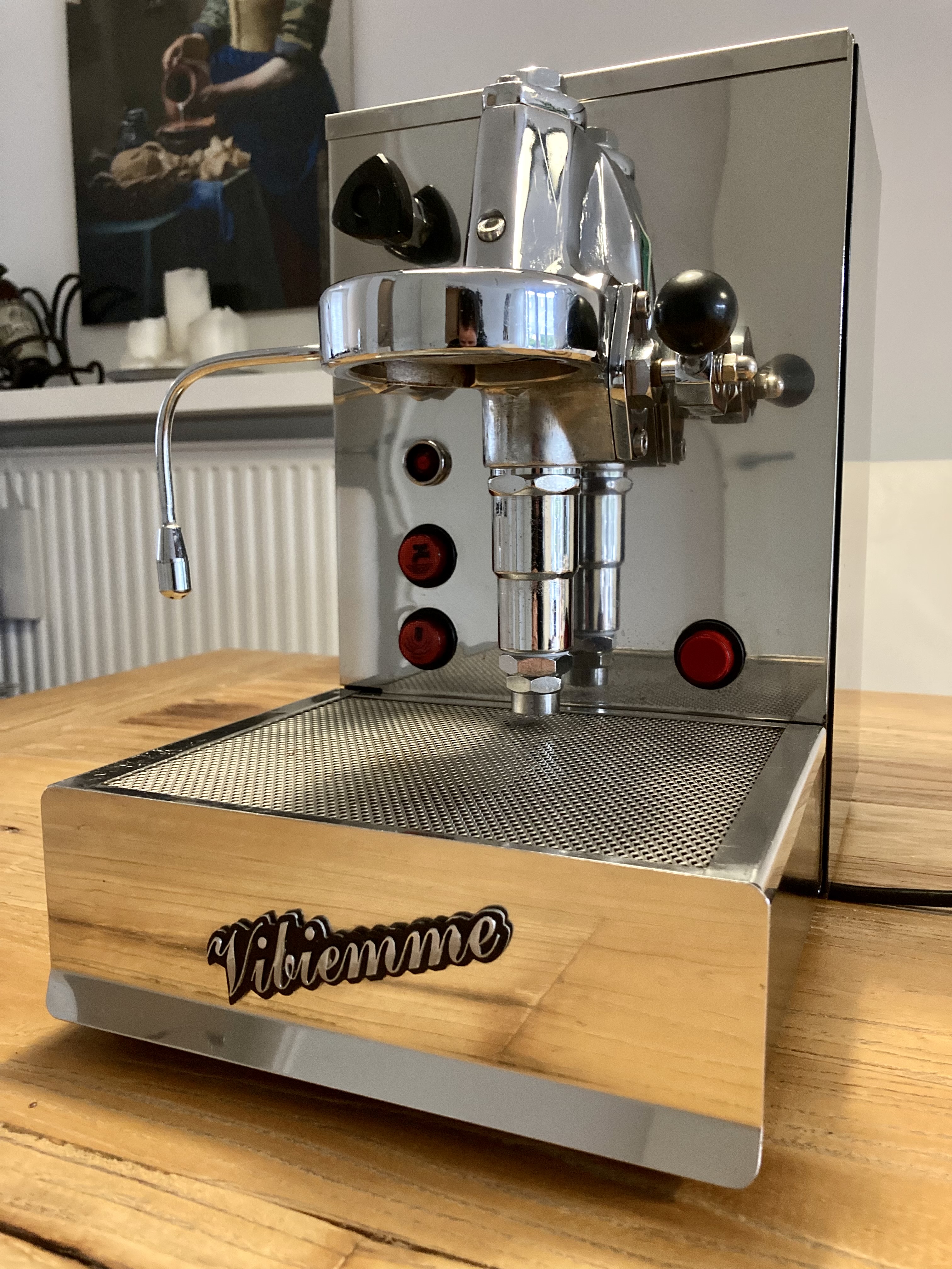 Ik ben nieuw op dit forum, dus zal me even voorstellen: ik ben Rob en -net als iedereen hier - houd ik erg van goede koffie. Ik heb een QuickMill 2835 waar ik zeer tevreden mee ben. Maar ik wilde graag een upgrade naar een machine met E61 zetgroep, vandaar dat ik een Vibiemme Domobar heb aangeschaft. Die heb ik afgelopen maand helemaal laten opknappen. Maar in de praktijk is de Quickmill handiger. Sneller warm, eenvoudiger te bedienen. Dus, de Vibiemme Domobar gaat weg. Dit is er allemaal gebeurd: