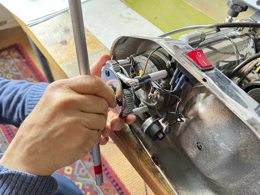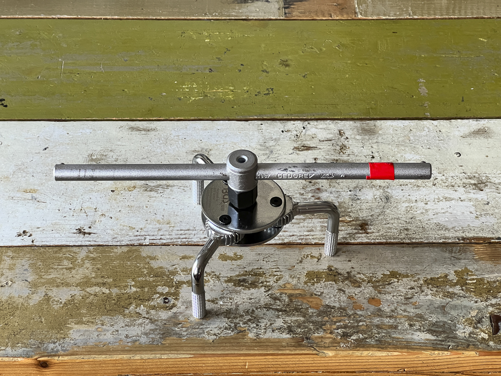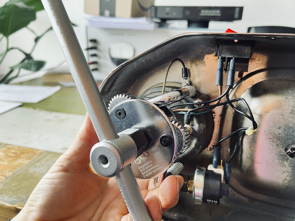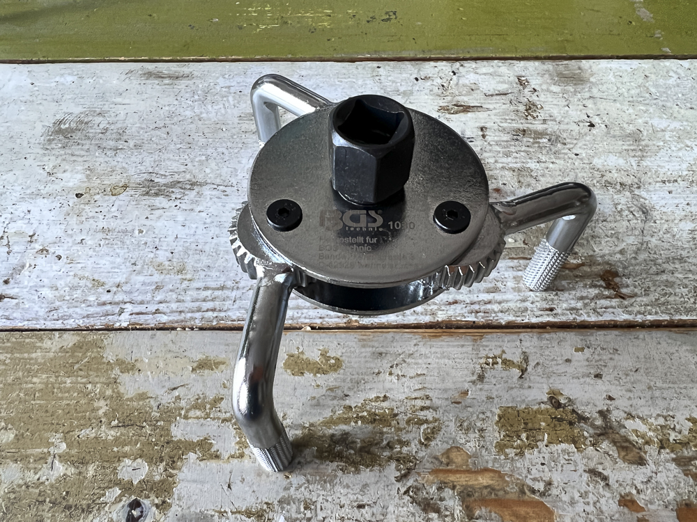 Heb 'n oliefiltersleutel besteld, type spin, voor een tientje, werkte perfect om de boiler-ring beter aan te draaien