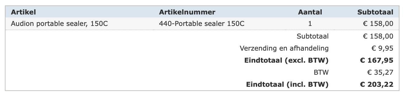 - Iets om de zakken mee dicht te sealen. Dit kan een stijltang zijn (die ik niet heb), maar kwam ook deze tegen Impulse Sealer 200mm/2mm