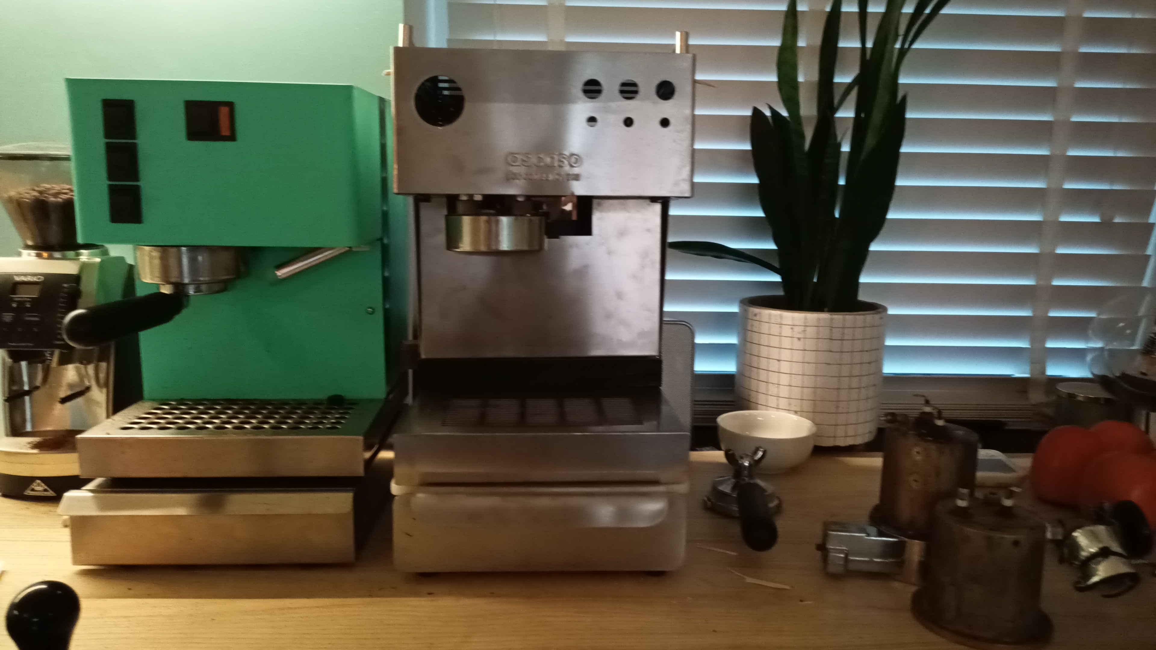 Machine voor mijn vrouw: QuickMill 3000. Werkruimte: Rancilio Silvia PdG V2 en La Pavoni Europiccola.