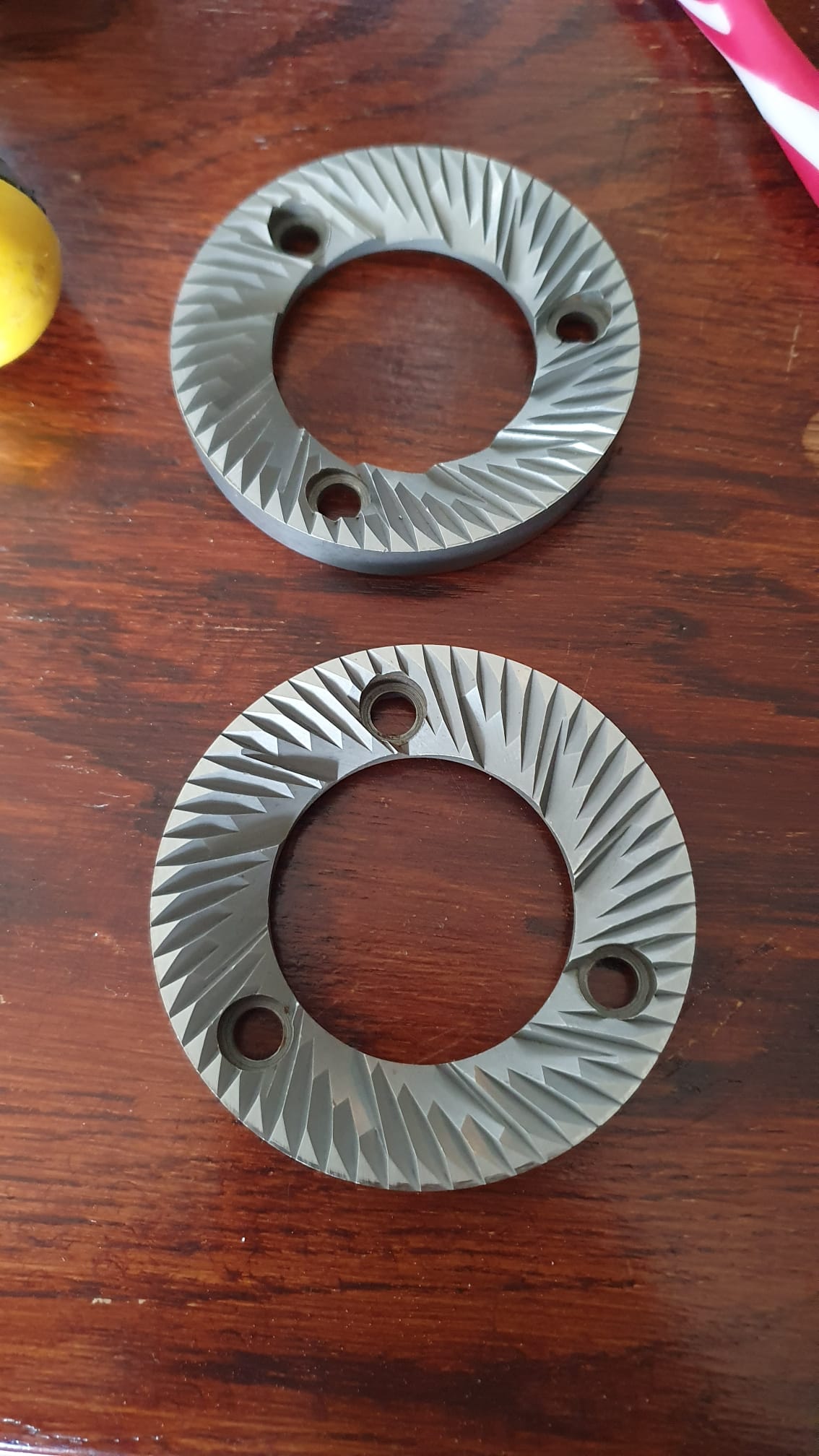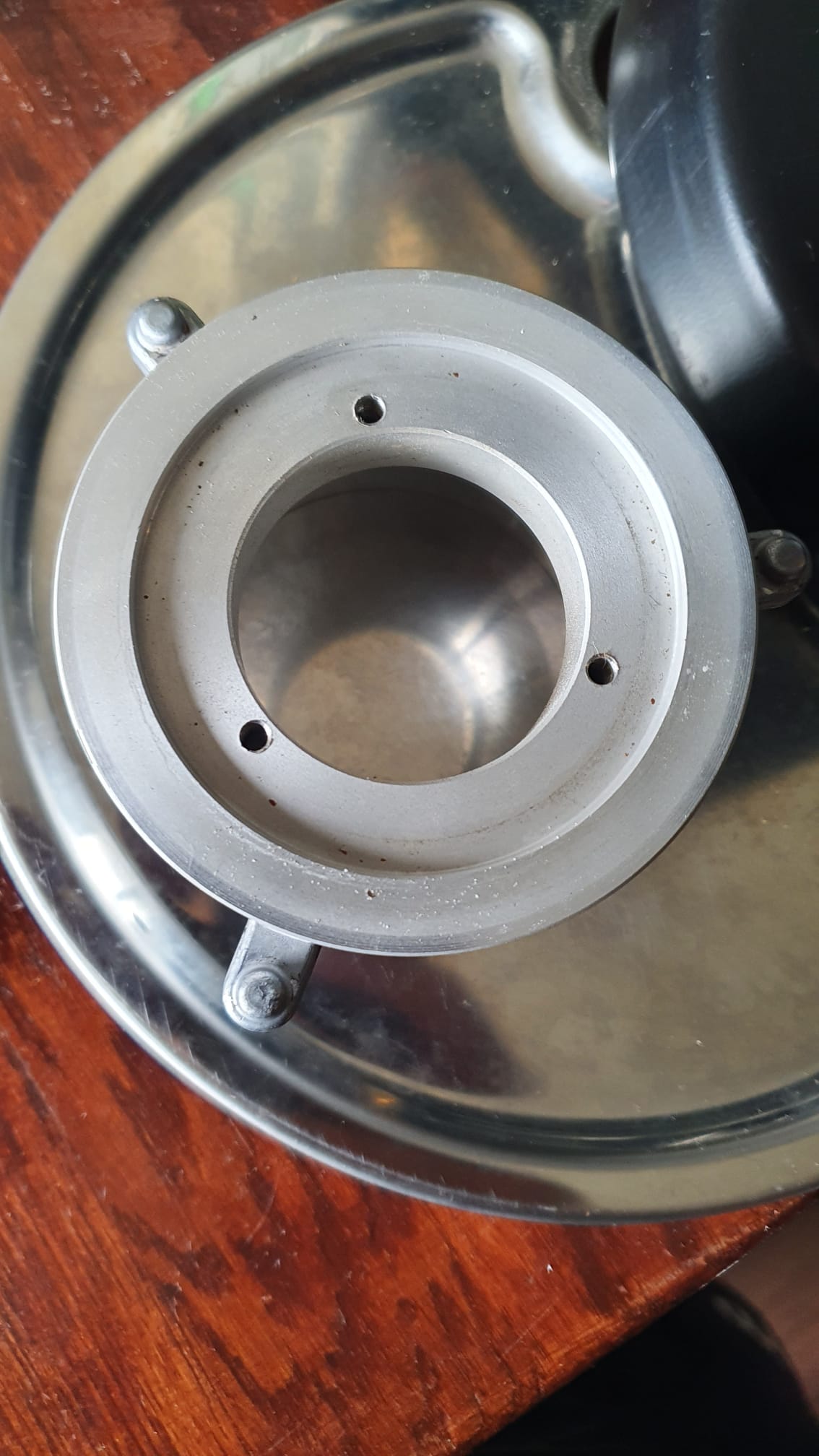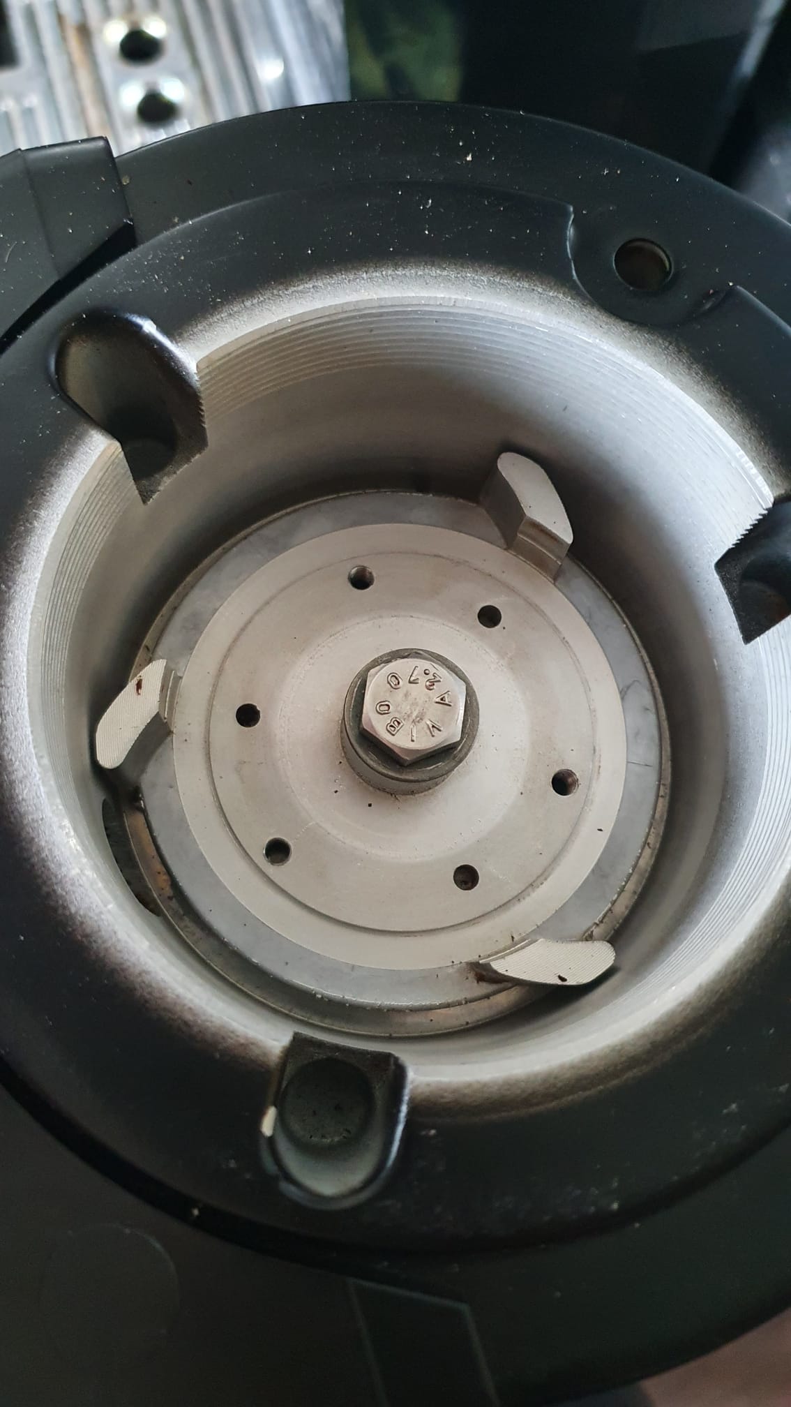 4Ziet er in ieder geval weer schoon uit! Zijn de maalschijven scherp? En kan je ze in de allerfijnste stand tegen elkaar aan zetten. Een slagje terug en je zou een prima fijn maalsel moeten krijgen. De bovendrager staat op veertjes. Als je daarop van bovenaf drukt gaat het fijner stellen wat makkelijker. Bij mij zorgde corrosie ervoor dat het stellen soms wat lastig ging. De stelring en bovendrager klemmen zich dan vast aan elkaar.