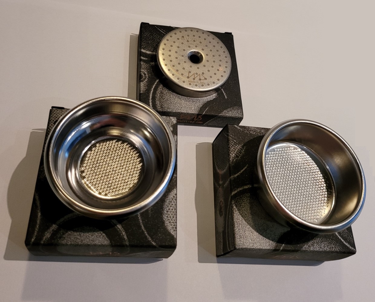 Baskets en shower screen zijn dus maar een maand gebruikt. Het liefst verkoop ik het hele setje in één keer aan een Sage / Breville / Solis bezitter die de stock filters en douche scherm wil upgraden
