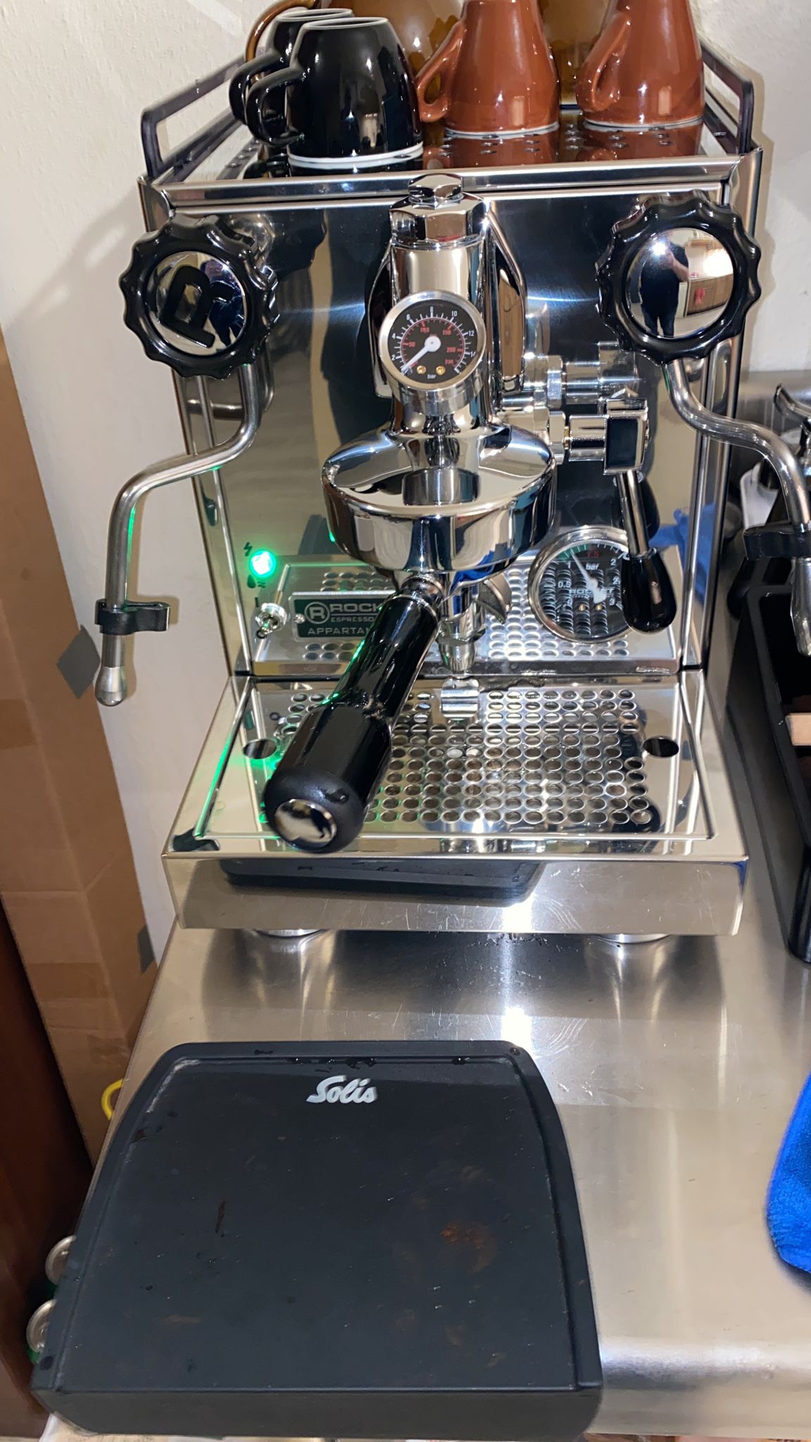 Het had wat voeten in aarde maar Han heeft vandaag persoonlijk de rocket afgeleverd , de zij platen heeft die verwisseld voor de kleur die ik graag wilde, een Mano meter op de zetgroep gemonteerd , de machine afgesteld op het juiste aantal bar, wat ben ik blij dat ik van bobbee de tip kreeg om Han te benaderen, waarvoor mijn dank bobbee, geweldig stuk service van han gekregen, er zijn ook wat veranderingen af fabriek aangebracht op de rocket appartemento , maar dat kan Han beter uitleggen, ik ben 100% tevreden en dat komt niet in de laatste plaats door Han, vandaar mijn complimenten aan Han,en bedankt man