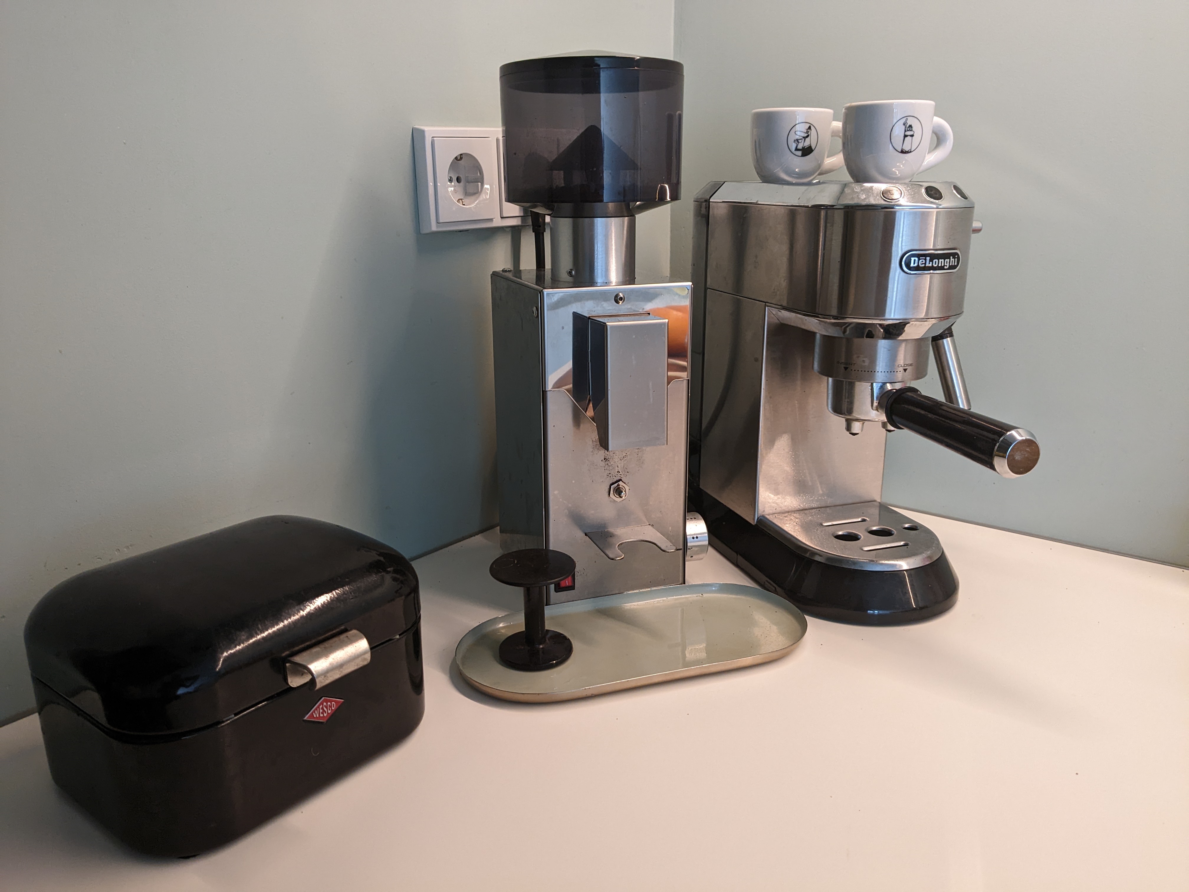 Machine voor mijn vrouw: QuickMill 3000. Werkruimte: Rancilio Silvia PdG V2 en La Pavoni Europiccola.